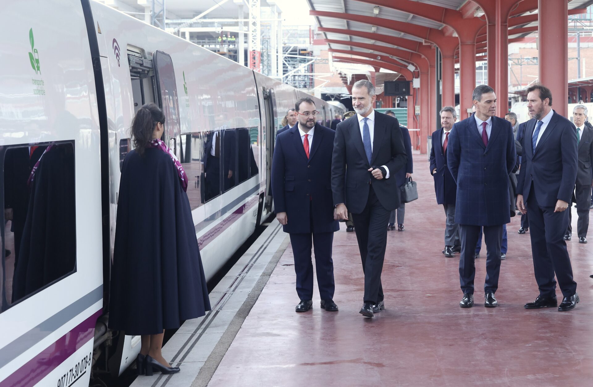 El presidente de la Junta se une en León al Rey Felipe VI, el presidente del Gobierno y su homólogo en el Principado en el viaje inaugural de la infraestructura que acerca Asturias a la capital de España