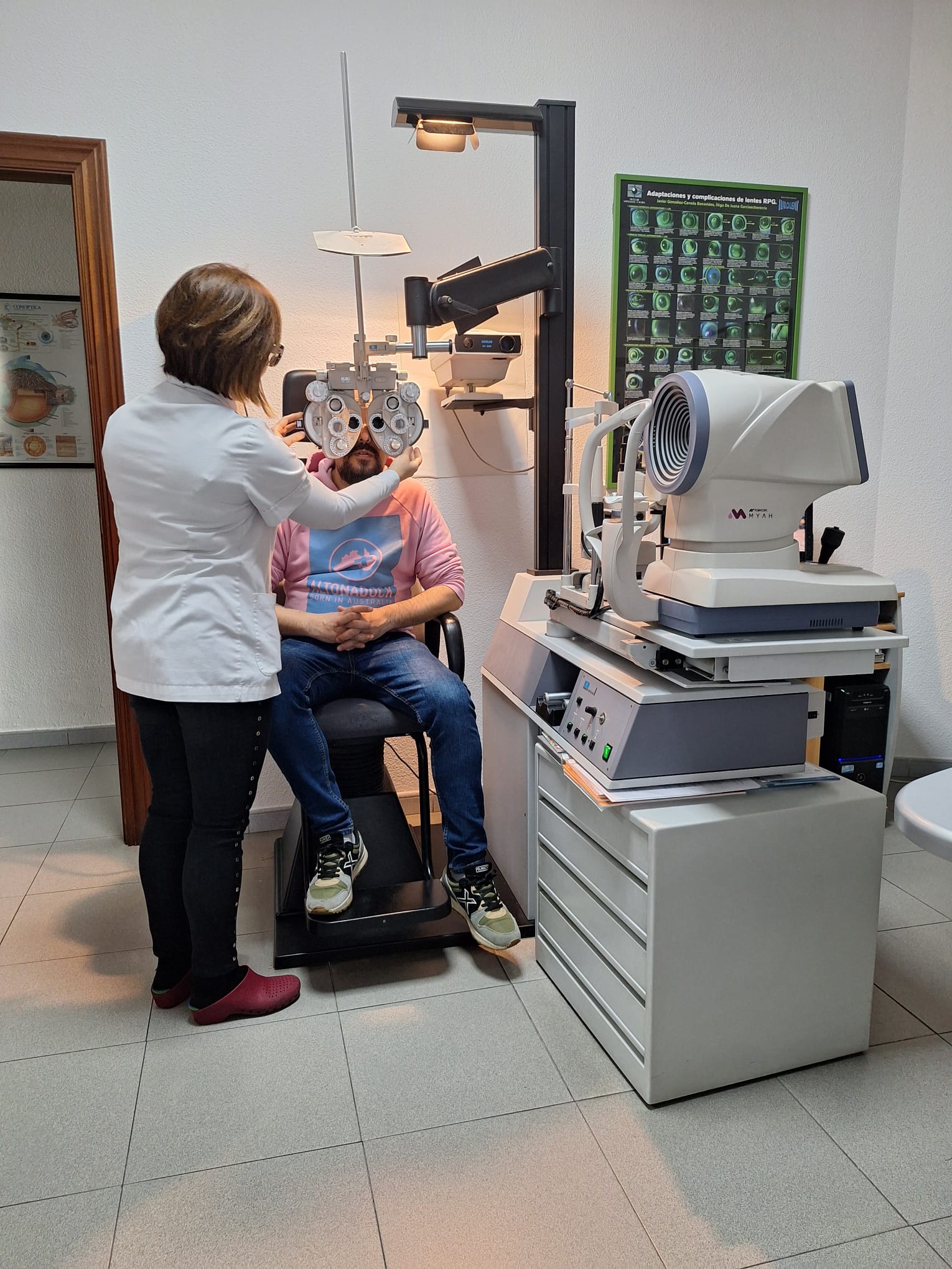 Su óptico-optometrista, Ana Belén Cisneros, vicedecana de COOCYL, fue quien le acompañó durante el proceso de adaptación a las lentillas multifocales.