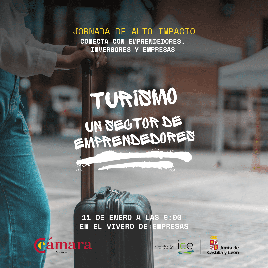 La Cámara de Comercio de Palencia organiza unas jornadas para emprendedores, empresas e inversores con un hilo conductor: el turismo. Tendrá lugar este jueves, 11 de enero, en el Vivero de Empresas de la avenida de Santader de la Cámara. En ella se tratará actividades de alto impacto dirigidas a todos los miembros del ecosistema emprendedor.