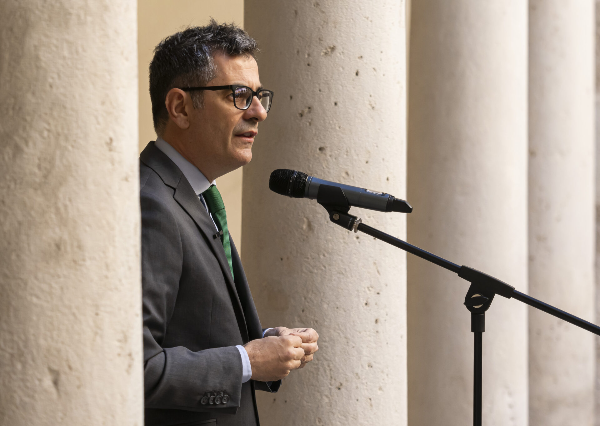 El ministro de la Presidencia, Justicia y Relaciones con las Cortes, Félix Bolaños, atiende a los medios en su visita a Valladolid