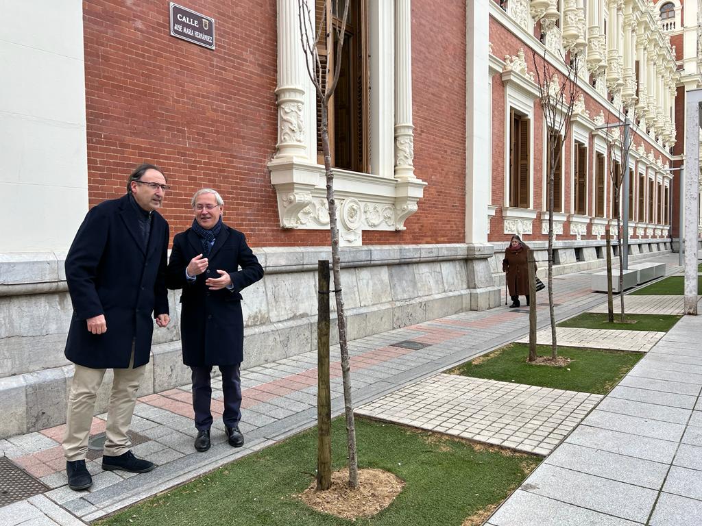 El Primer Teniente de Alcalde, Alfonso Polanco y el concejal de Medio Ambiente, Juan Antonio Marcos, han sido los encargados de presentar una muestra de la nueva plantación que ha iniciado el Ayuntamiento de Palencia.