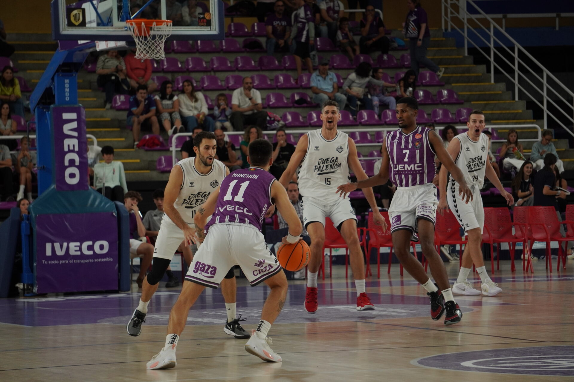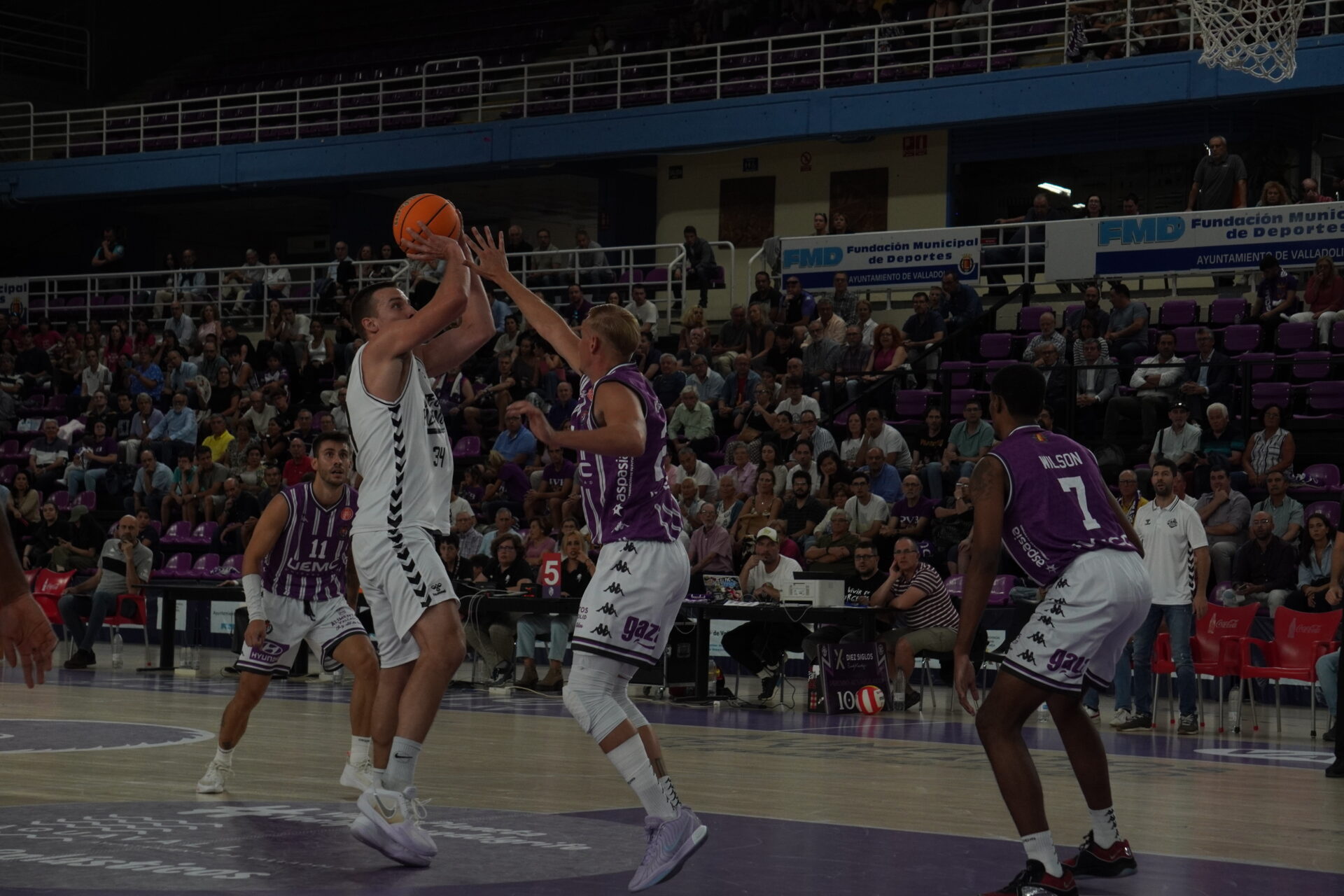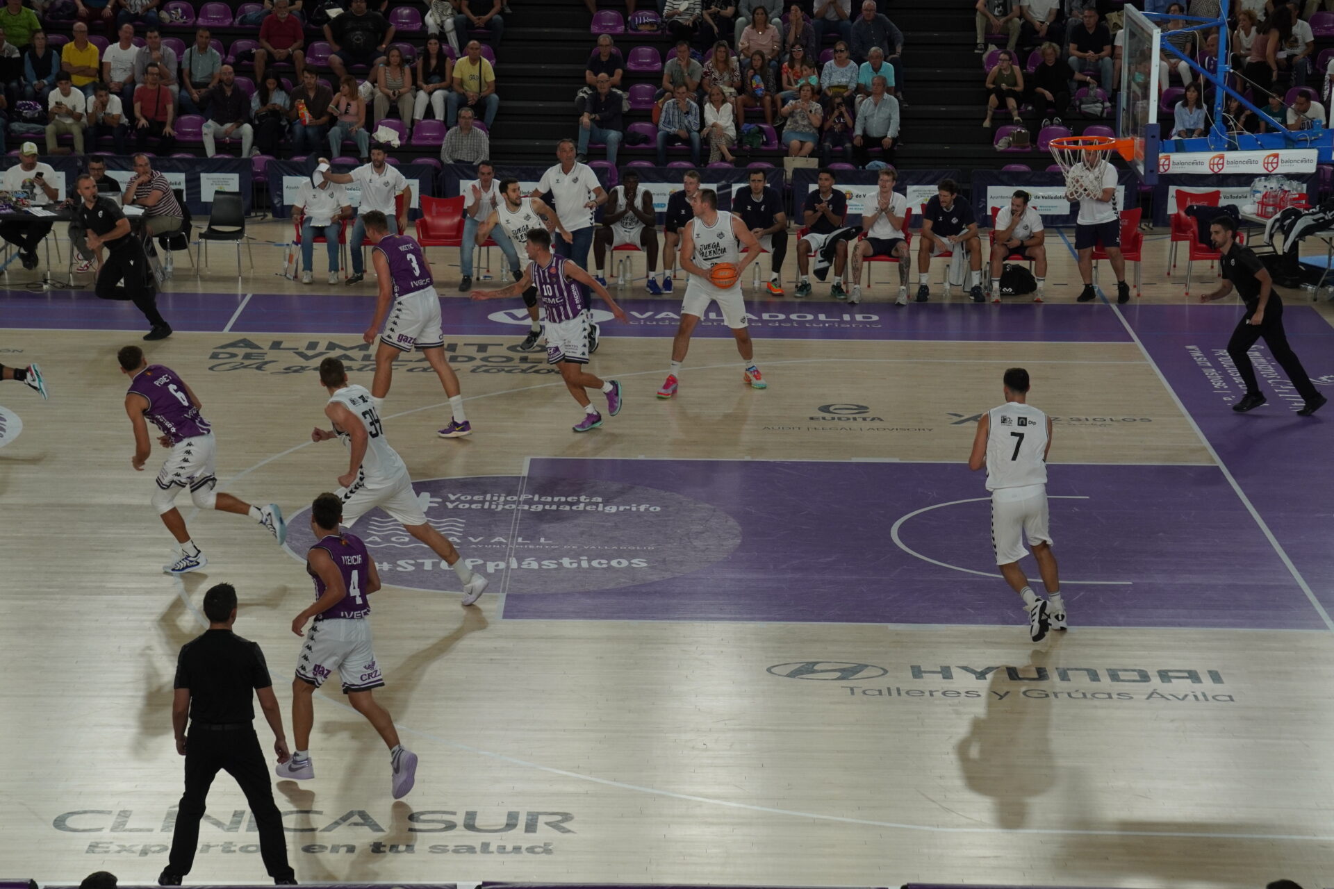 Sacó Guil la artillería: Krutwig, Vaulet, Wintering, Kamba y Borg. Buscando puntos rápidos, transiciones meteóricas. Lo cual fue fácil por los fallos del Valladolid al arrancar. Tuvo que ser el eterno De la Fuente quien abriera el marcador para los locales cuando los palentinos ya llevaban varias canastas de ventaja.
