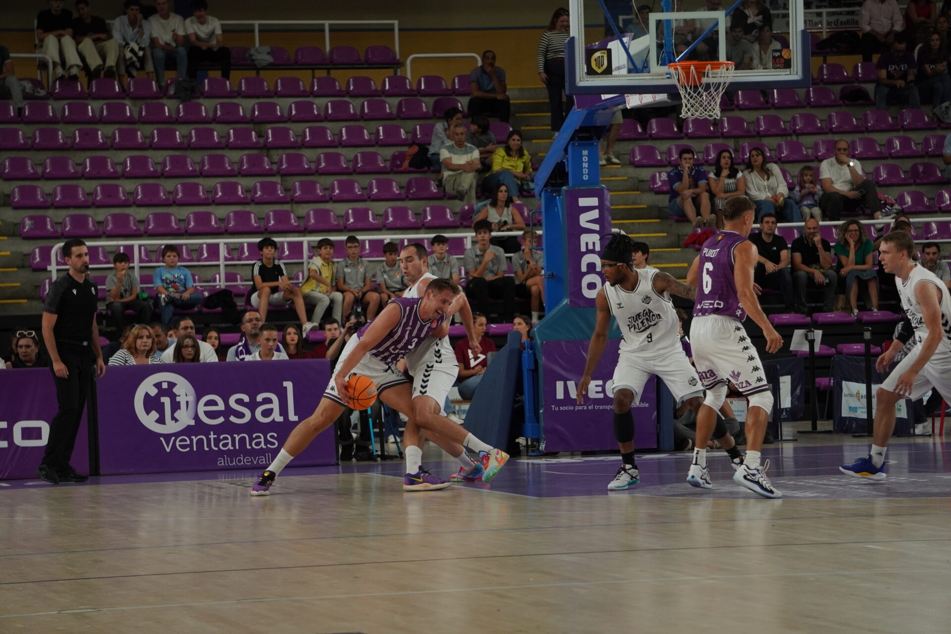 Primeros tres ataques visitantes, y todo ‘aguas’. Todo lo contrario que el Pucela, que dirigido por Atencia, volvía a poner la igualada y colocarse por delante después de mover y mover el árbol del Palencia. De zarandearlo en varias jugadas. 43-41.