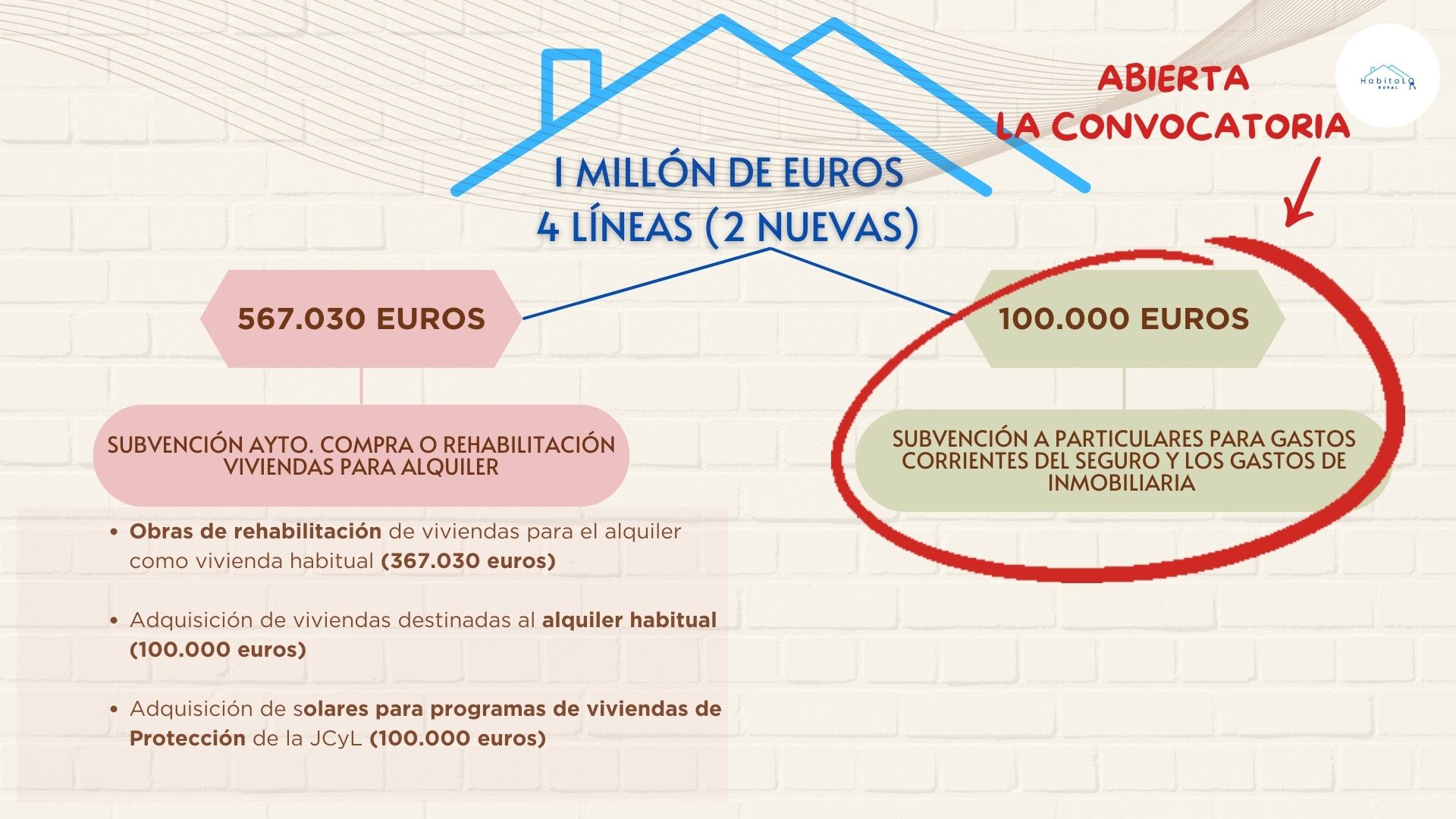 HabitaLO RURAL está formado por cuatro líneas de actuación, de las que dos de ellas ya se venían desarrollando con gran éxito, y otras dos son de nueva creación. Las líneas de nueva creación van destinadas directamente a ayudar a los ayuntamientos para la compra o rehabilitación de viviendas para su alquiler y a subvencionar los gastos de los particulares para la contratación del seguro de la vivienda en alquiler y de los gastos generados por la inmobiliaria. Este programa de vivienda cuenta con un presupuesto de un millón de euros.