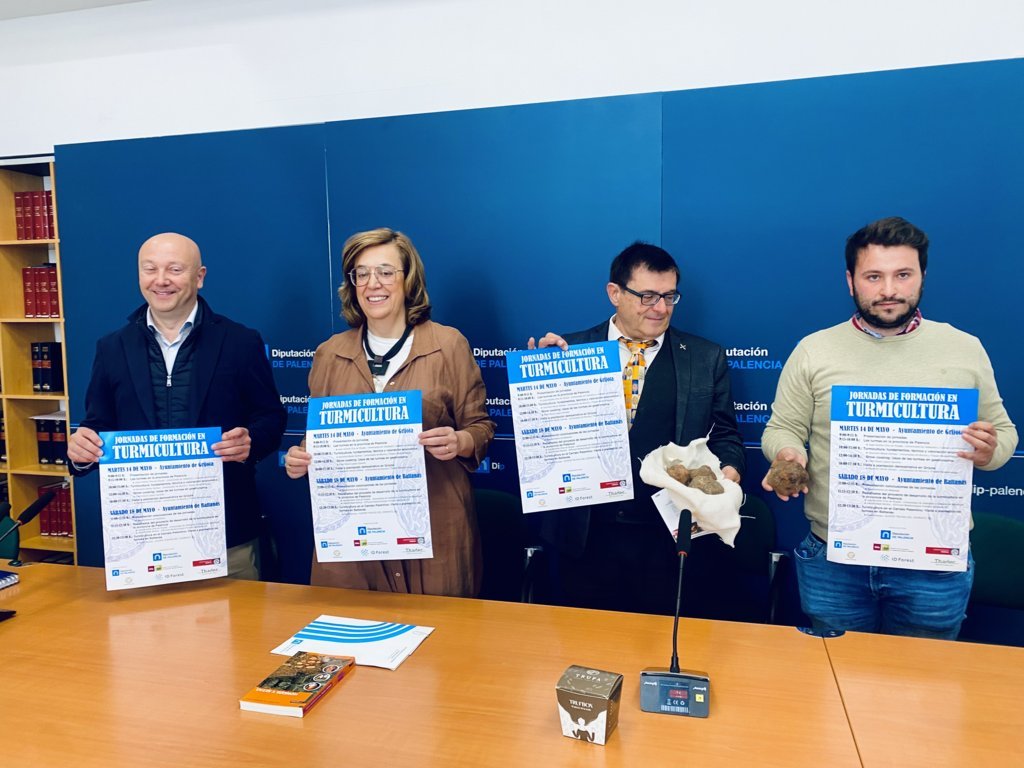 La presidenta de la Diputación de Palencia, Ángeles Armisén, junto al diputado de Desarrollo Agrario, Medio Ambiente y Protección Civil, Luis Calderón, y otros colaboradores, presentaron en rueda de prensa el programa de las jornadas. La turmicultura, también conocida como el cultivo de las trufas del desierto o criadillas de tierra, es un grupo de hongos comestibles que crecen bajo el suelo en zonas áridas o semiáridas.