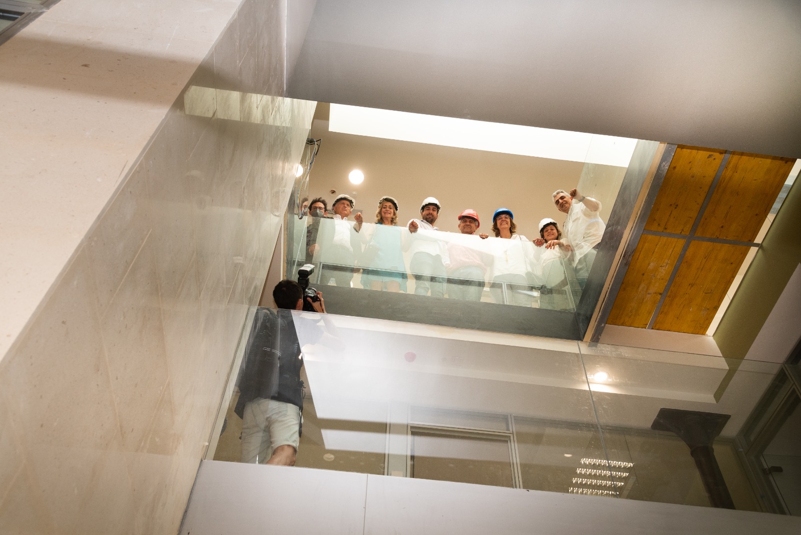 La presidenta de la Diputación de Palencia, Ángeles Armisén, junto a la diputada de Cultura, Turismo y Deportes, Carolina Valbuena, el diputado delegado del Servicio de Turismo, Francisco Pérez, y la diputada del Área de Hacienda y Administración General, Maria José de la Fuente, presentaron hoy el estado de las obras de adecuación y restructuración que se están llevando a cabo en el edificio provincial de la Plaza de los Juzgados.