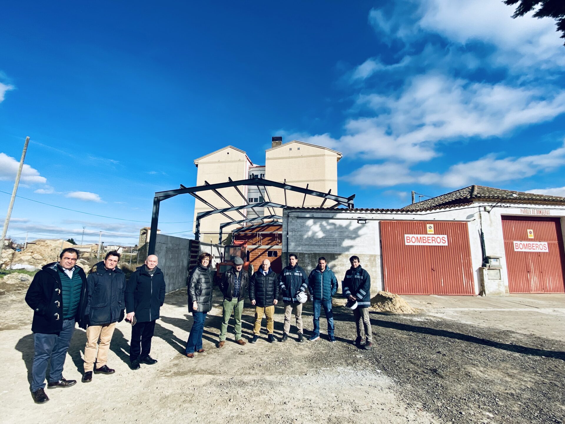 Han visitado las obras de construcción de una pequeña nave-cochera de 135 metros cuadrados adosada al parque de bomberos comarcal para albergar en su interior vehículos y material.