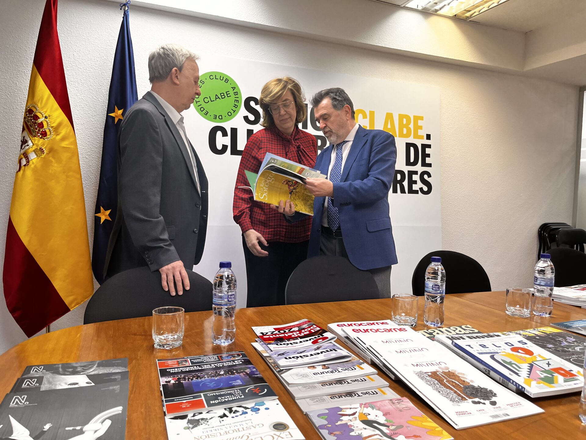 La presidenta de la Diputación Provincial de Palencia, Ángeles Armisén, ha mantenido una reunión de trabajo con el presidente de CLABE, Arsenio Escolar, el vicepresidente primero, Ignacio Rojas, y el director y secretario general, Juan Zafra, en la sede de la asociación de editores, en Madrid, en la que se ha cerrado el acuerdo de colaboración entre la Diputación Provincial de Palencia y CLABE para la celebración del XVIII Congreso de Editores, que contendrá, entre otros aspectos destacados, el patrocinio del Congreso y la cesión de diferentes espacios, como el Palacio de la Diputación.