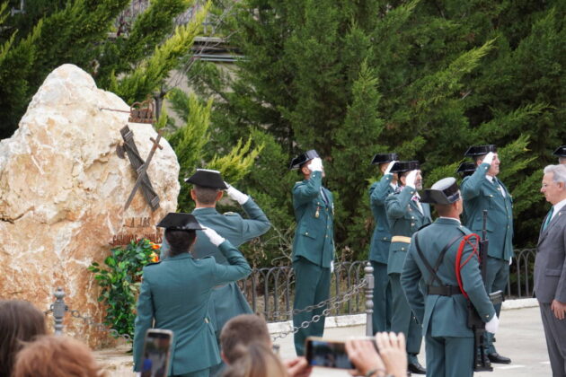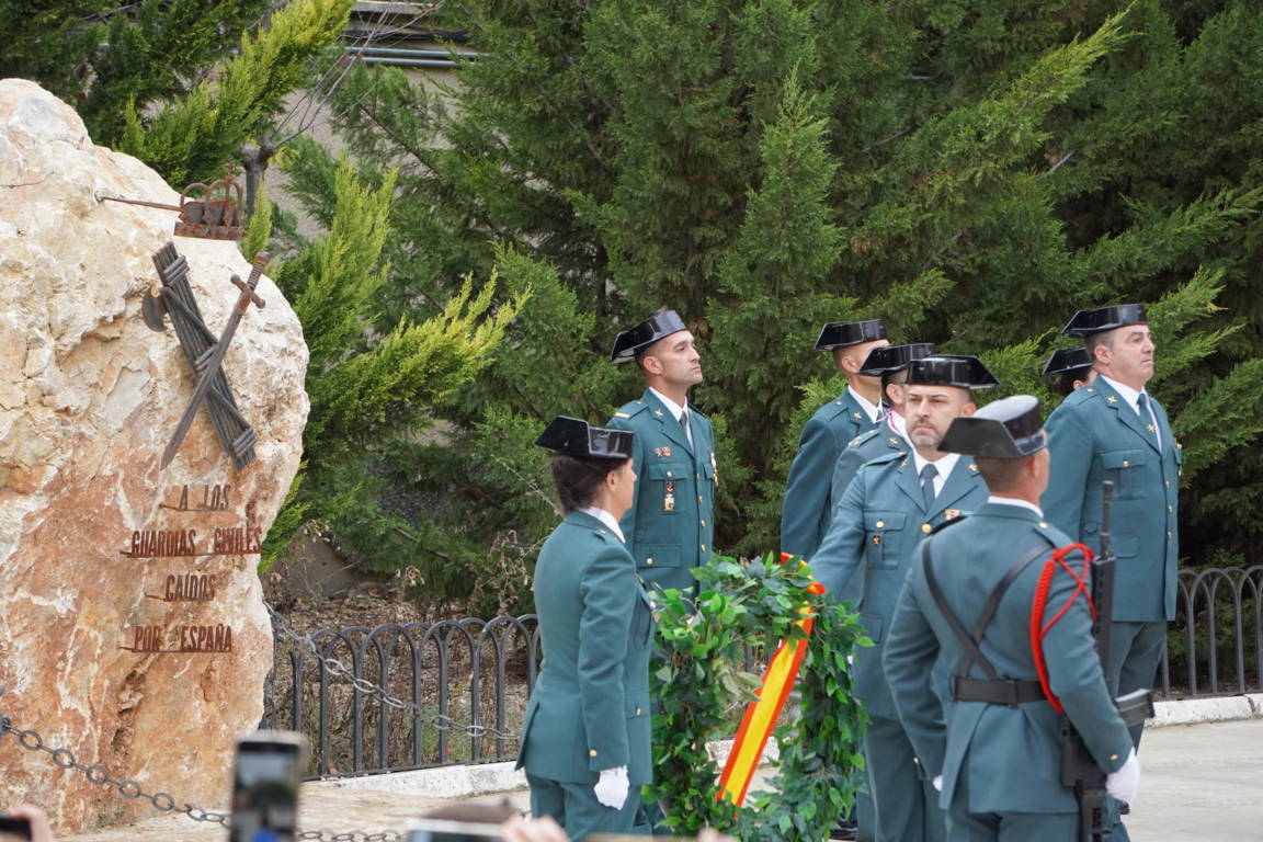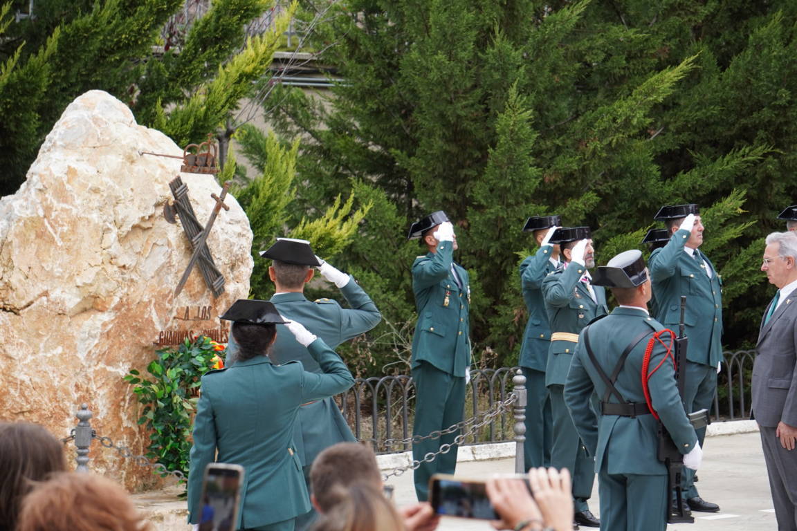 Por ello, y ante las autoridades civiles y militares, se rindió homenaje a los 5.622 guardias civiles que perdieron la vida en acto de servicio “pero de forma especial a David, Miguel ángel, José Antonio, Eneko y Juan Jesús, caídos en acto de servicio en 2024 en Barbate, Sevilla y Torrelaguna”.