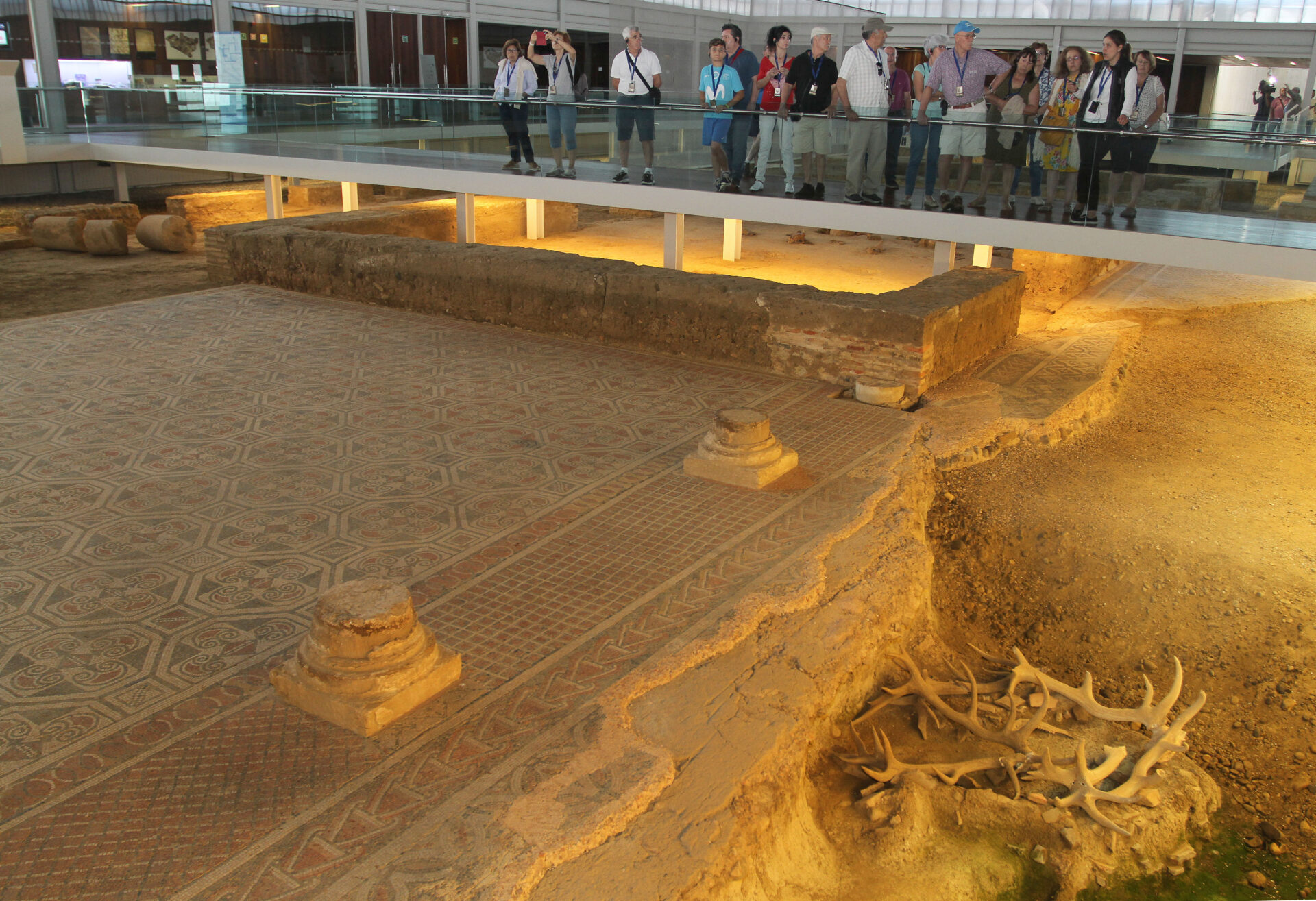 El museo de La Olmeda, ubicado en la antigua Iglesia de San Pedro de Saldaña gracias a un convenio con el Obispado, es otro pilar fundamental del proyecto. Alberga una de las colecciones de vidrio romano más importantes del mundo, junto con monedas, cerámicas y objetos cotidianos recuperados de las 600 tumbas excavadas en el entorno de la villa. Entre los hallazgos destacan dos contorniatos, monedas sin valor de circulación que funcionaban como “tarjetas de visita” de la élite romana, incluyendo una del emperador Teodosio y otra del emperador Nerón. “¿Por qué las tenía el dueño de ese palacio? Porque eran como decir ‘aquí me tienes para lo que necesites’”, explica Gutiérrez.