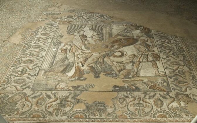 La Villa Romana de La Olmeda, situada en Pedrosa de la Vega, es uno de los yacimientos arqueológicos más destacados de España y del occidente europeo. Descubierta en 1968 por Javier Cortés, esta villa palaciega del Bajo Imperio (siglos I al IV) es un testimonio excepcional de la arquitectura rural romana. Con una superficie de casi 4.000 metros cuadrados, el complejo incluye 31 habitaciones, un jardín, cinco pasillos, cuatro torres, una sala de baños templados, talleres y una zona rústica fortificada. Pero lo que realmente distingue a La Olmeda son sus mosaicos: más de 1.400 metros cuadrados de teselas en un estado de conservación extraordinario, que narran historias mitológicas y escenas cotidianas con una maestría artística sin igual.