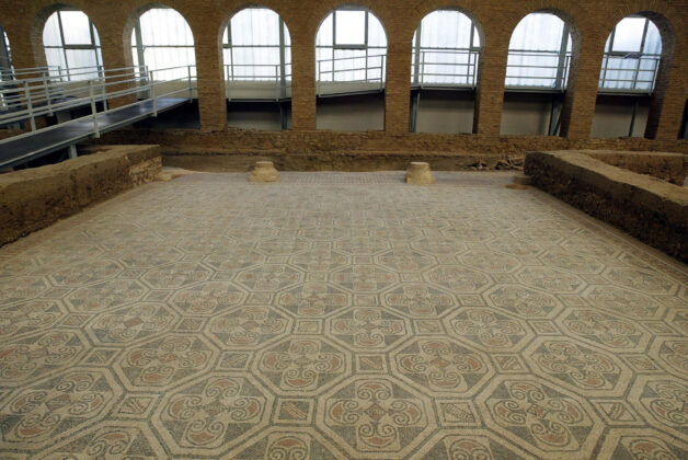 A pocos kilómetros de La Olmeda, en Quintanilla de la Cueza, se encuentra la Villa Romana de La Tejada, un yacimiento más pequeño pero igualmente fascinante. Aunque tradicionalmente se le ha llamado “villa”, los expertos coinciden en que se trata de un complejo termal, una suerte de balneario romano diseñado para el descanso y el disfrute. Sus mosaicos, con motivos marinos y geométricos que evocan al dios Poseidón, son comparables en calidad a los de La Olmeda y a los encontrados en regiones como Túnez o Sicilia. “Los mosaicos tienen la misma factura, con una calidad exactamente igual que los de La Olmeda”, destaca Gutiérrez, señalando la conexión cultural entre ambos sitios y su relevancia en el contexto del Imperio Romano.