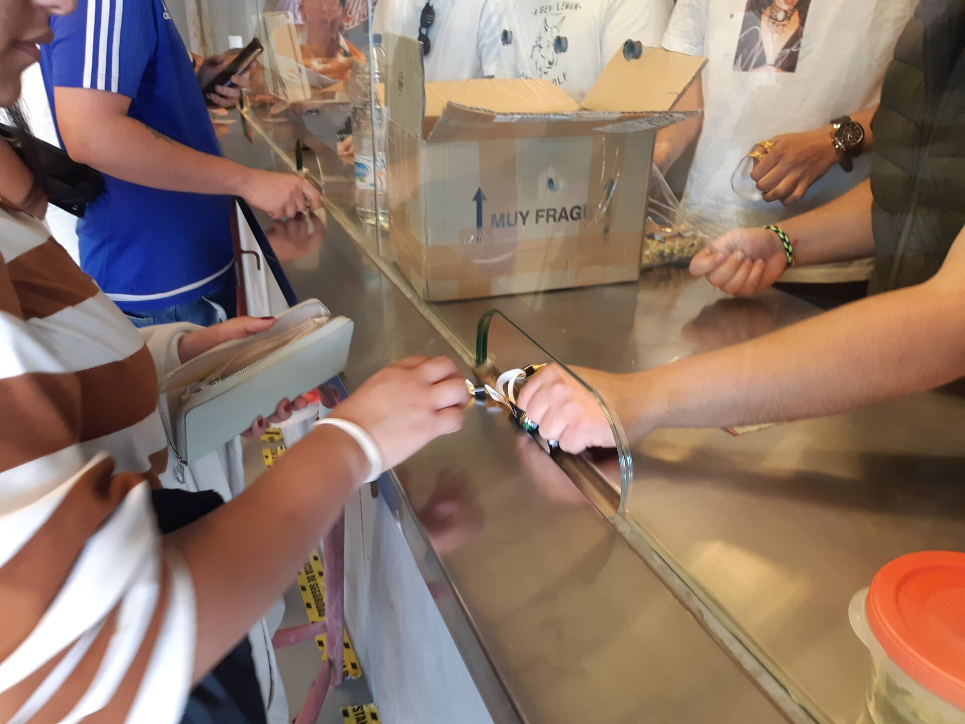 La larga cola, que alcanzaba tres cuartos de cola, no acabó con las pulseras puestas a la venta por muy poco