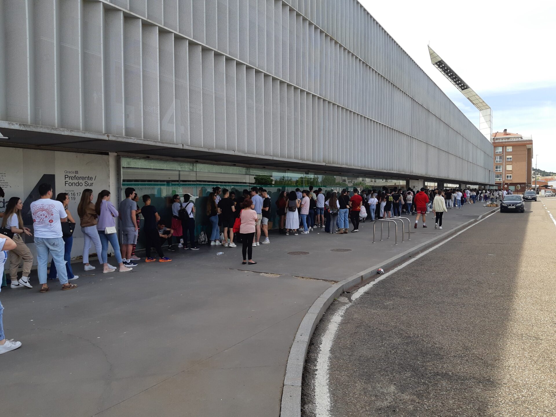 Pero remontémonos a la fresca mañana. Porque a las 8,15 horas se apostó ante la esquina noroeste de La Balastera el primer grupo de jóvenes con la intención de hacerse con la preciada pulsera que este año es de color amarilla y negra. Detrás de ellos, otros grupo, personas sueltas… la cola fue creciendo y creciendo, (este año a la sombra del Estadio) por el fondo norte para enfilar luego la tribuna este, llegar a la esquina del Arroyo de Villalobón y seguir un trecho por el gol sur. Ahí estaban los últimos, casi dando la vuelta a un tercio del estadio cuando el primero de la cola logró ponerse la pulsera. No era para menos. Había que asegurarse una entrada. Y más después de lo ocurrido el pasado año, cuando las mismas volaron en cuestión de poco más de media hora.