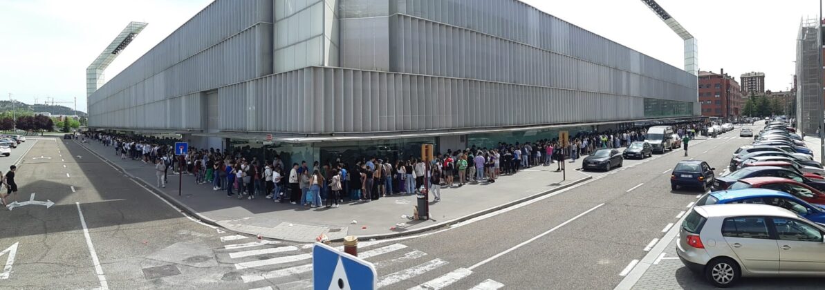 Son las 15,50 horas del viernes 5 de mayo y la organización de la ITA Palencia 2023 considera que, aunque falten 10 minutos para hora anunciada en la que se abría taquilla, no vale la pena hacer esperar y sufrir a los miles de jóvenes que se han agolpado ante las taquillas de La Balastera.