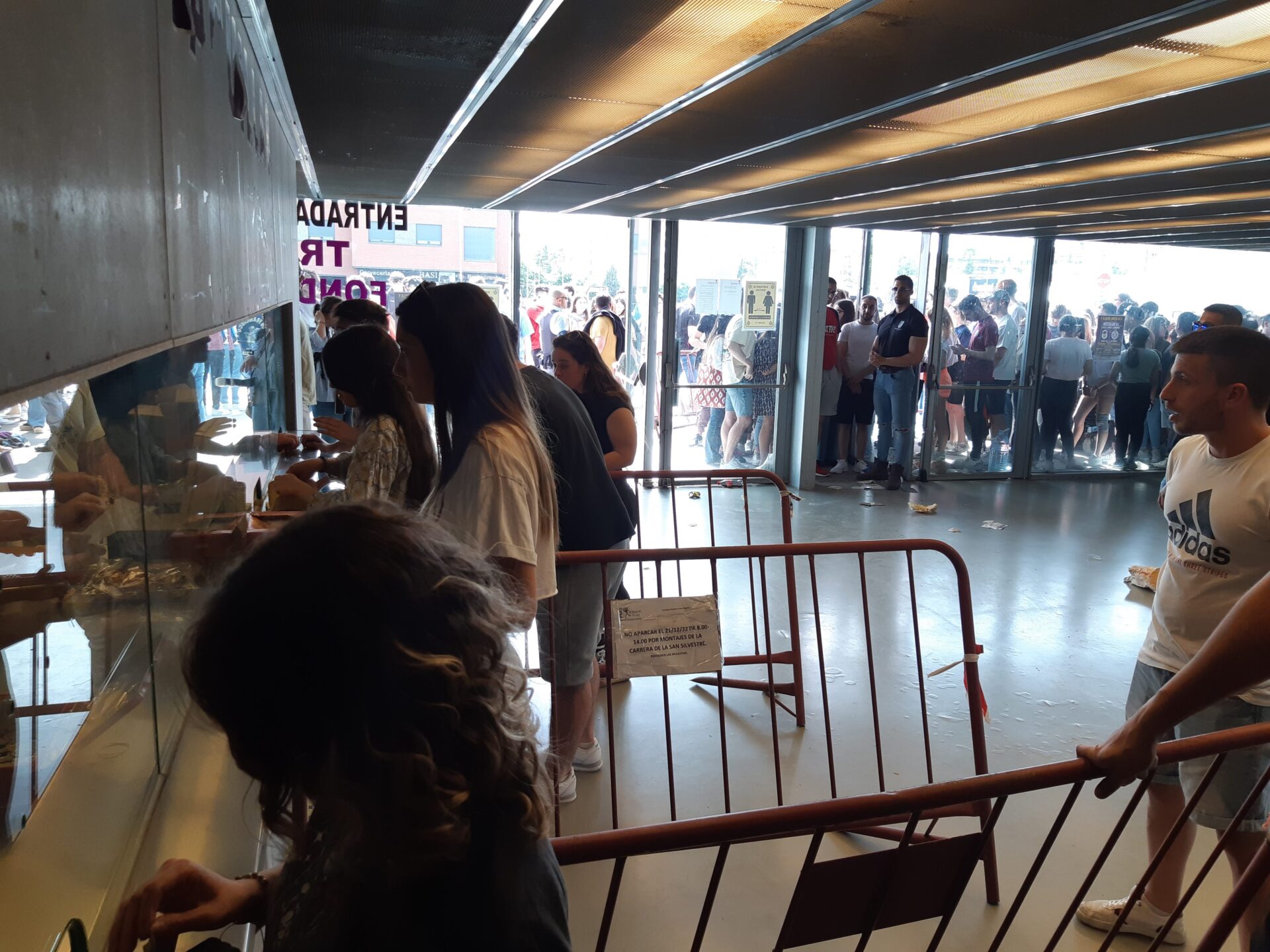 Tras horas de espera, en las que algunos, conocedores del reto que supone asegurarse una entrada, se llevaron sillas y mesas, las caras de los primeros propietarios de los brazaletes de tela que dan derecho a estar en la ITA lo decían todo. “¡Al fin!”, decían unos mientras otros ‘juraban’ apretando con rabia las pulseras. “El último tramo se ha hecho duro”, confesaba un joven refiriéndose la esquina de entrada, donde las ansias por entrar en la zona de taquillas hacían que muchos se sintieran ‘enlatados’.