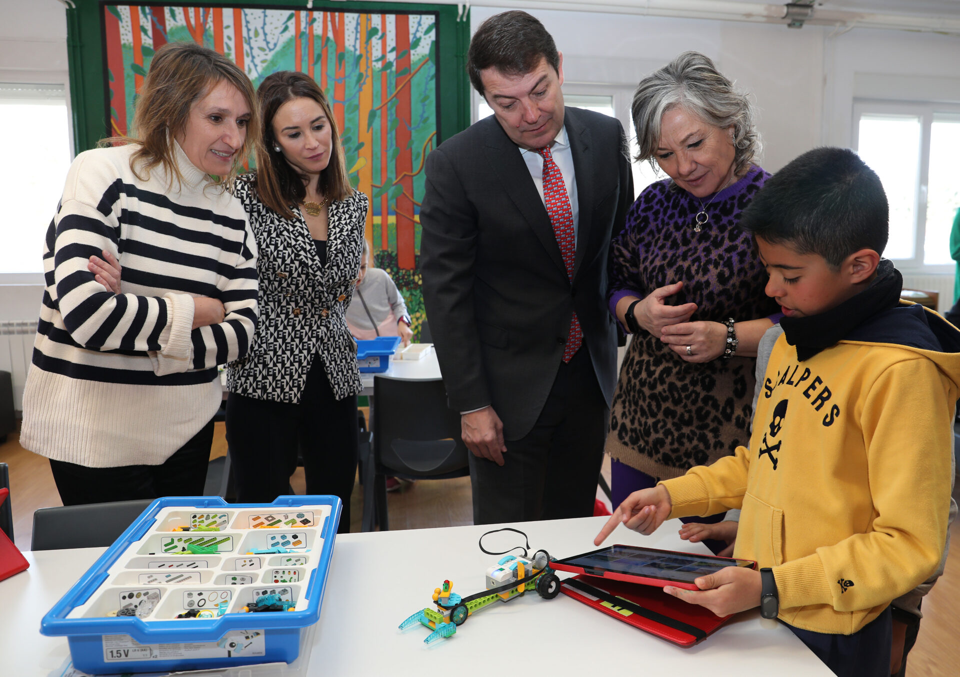 Alfonso Fernández Mañueco visita el CEIP ‘Castilla y León’, en Aguilar de Campoo, al estar desplegado el proyecto ‘Centros BITS’ y contar con electrónica red