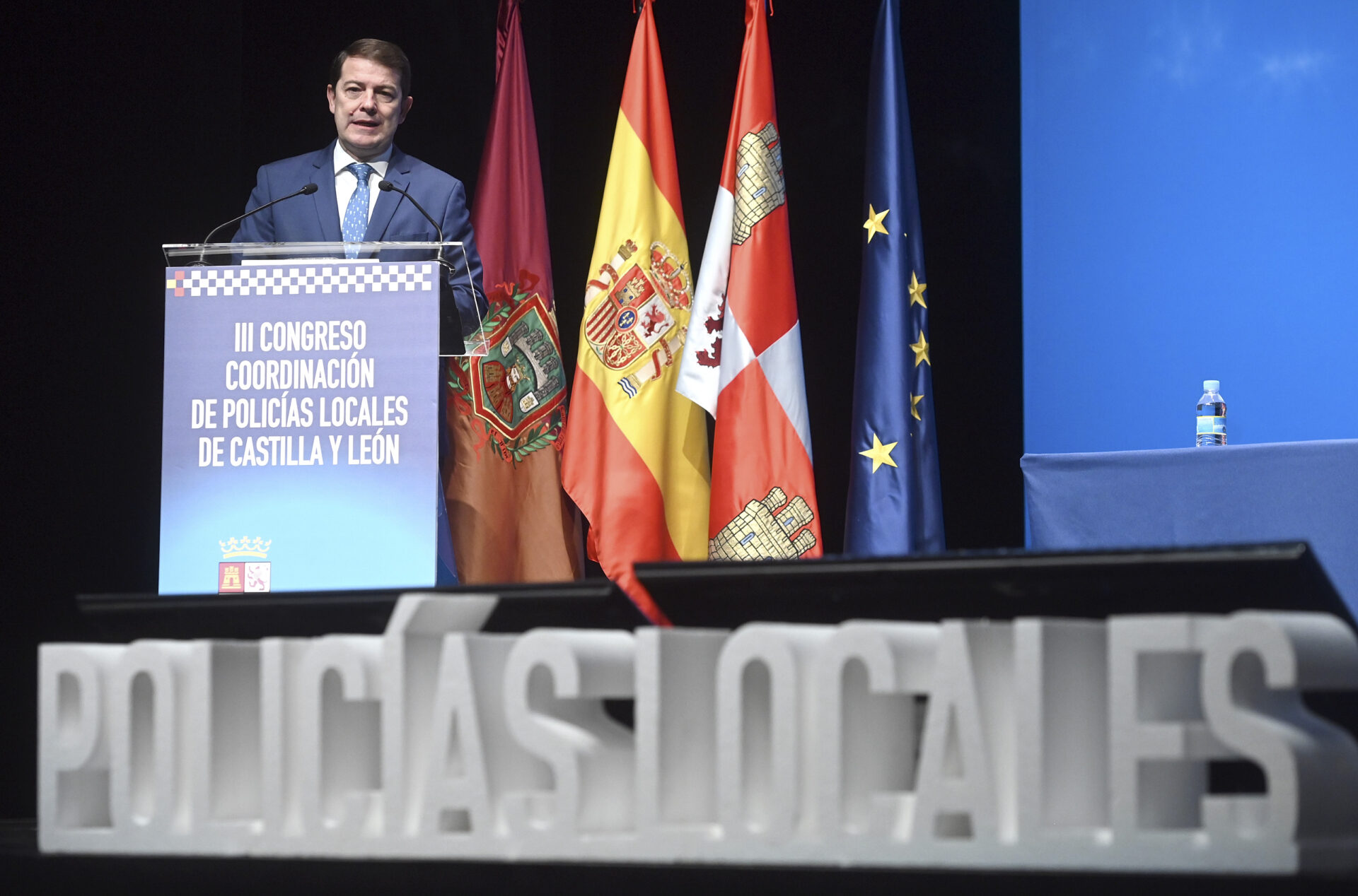“Garantiza algo tan precioso y valioso como es vivir en libertad, gozar de seguridad y todo ello bajo el paraguas de la igualdad de todos bajo la ley. Estos principios deben estar en vuestro trabajo diario”, aseveró el presidente autonómico. Finalizó su discurso trasladando su felicitación a todos aquellos que mañana recibirán una medalla al mérito policial, con las que se reconoce a aquellos efectivos que “más han destacado en el ejercicio de sus funciones, llegan a arriesgar su integridad física”. “Desde Castilla y León vamos a seguir trabajando, pensando en vosotros y en la tarea que tenéis que desarrollar al servicio de las personas de Castilla y León”, concluyó Mañueco, dirigiéndose a los miembros de la Policía Local presentes hoy en el Fórum Evolución, donde se desarrolla este Congreso.