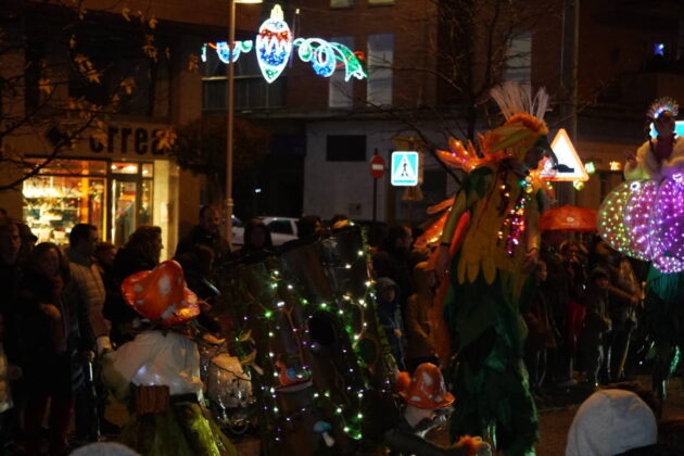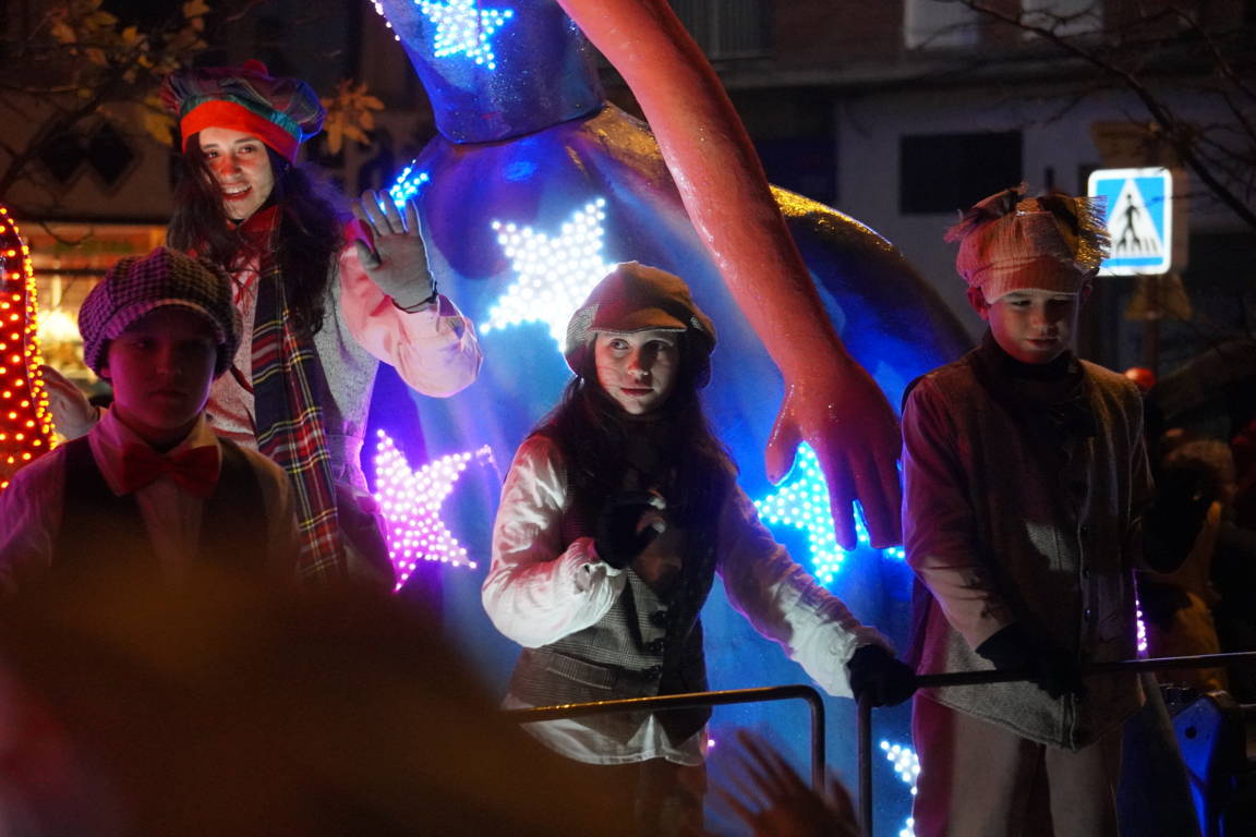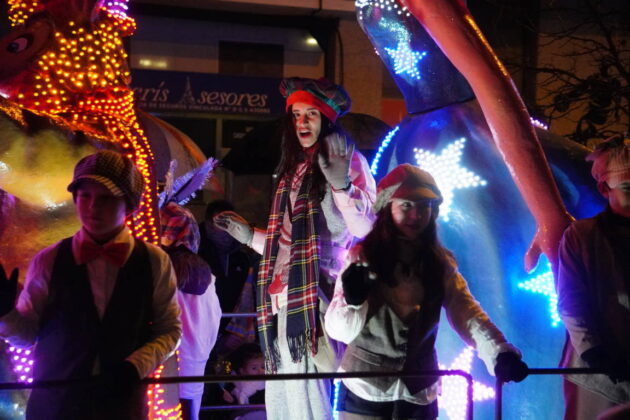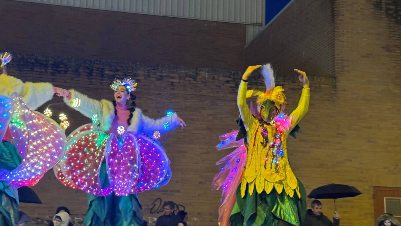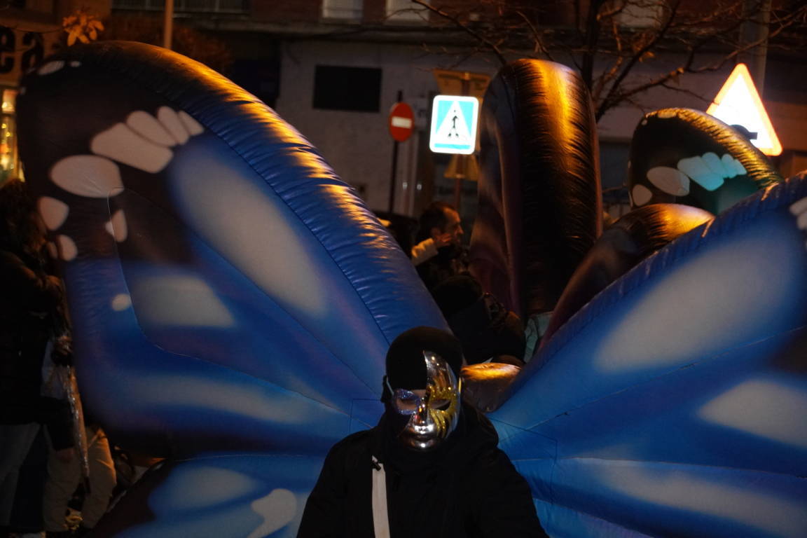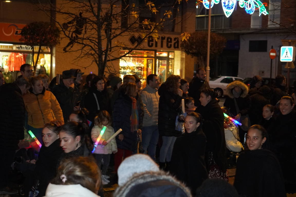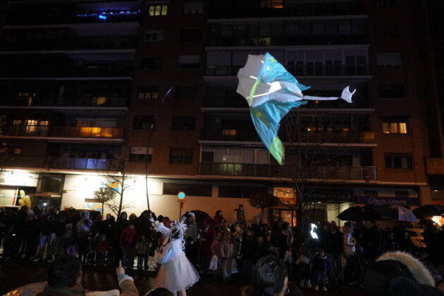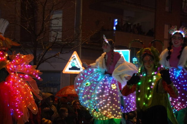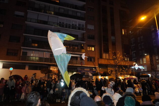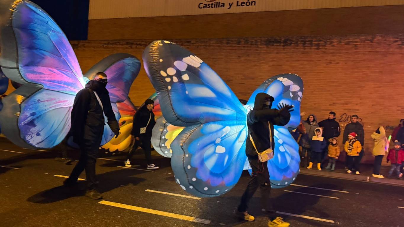 Y el tren turístico que durante estos días ha estado recorriendo la ciudad marcó junto a las mariposas luminosas, la segunda parte de la cabalgata que se volvió más tradicional. Con María José y el niño abriendo este acto, seguidos de los pastores y del Grupo de Danzas tradicionales Reino de Castilla.