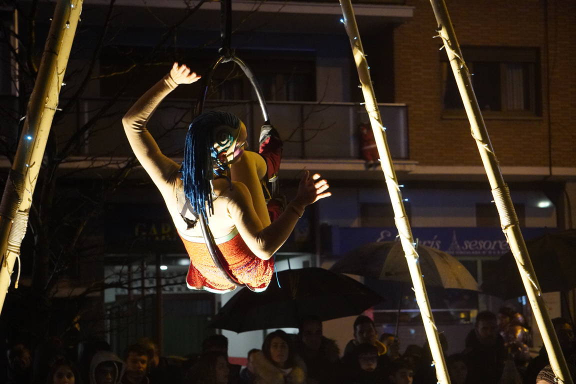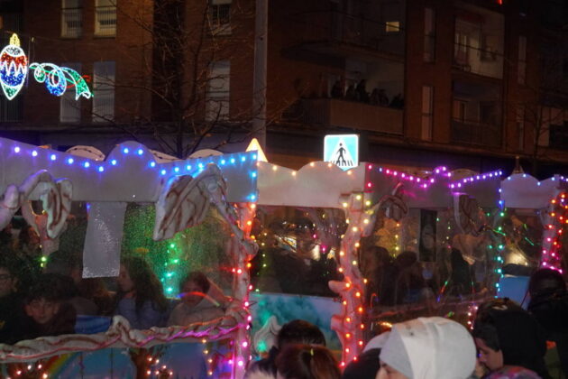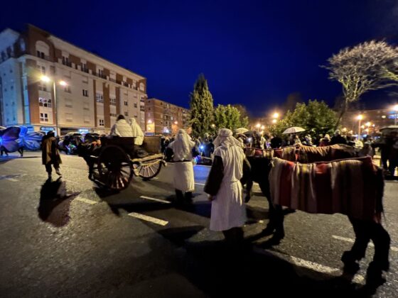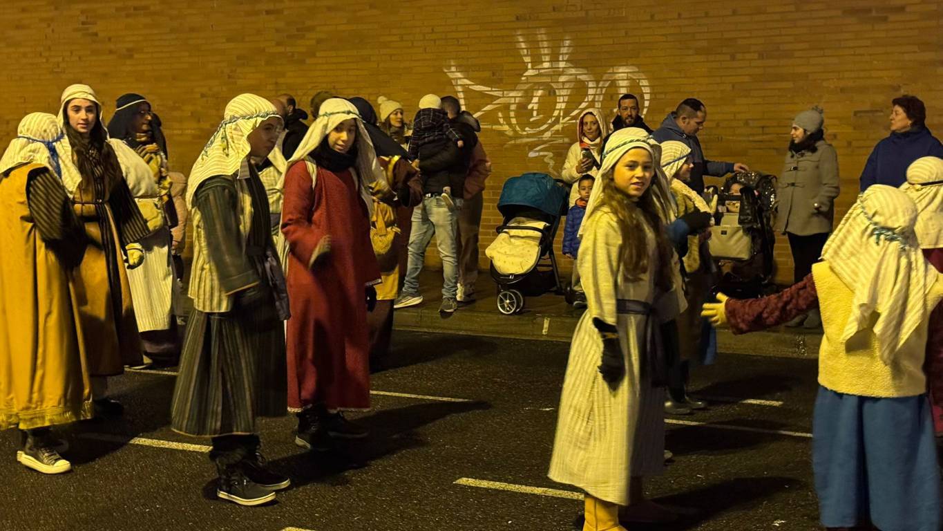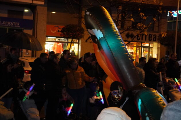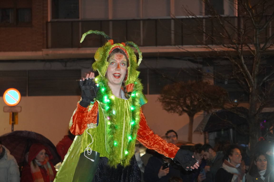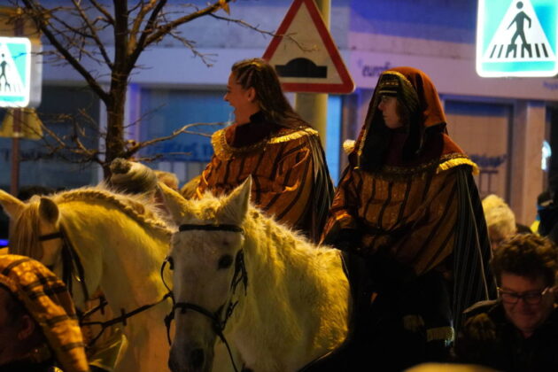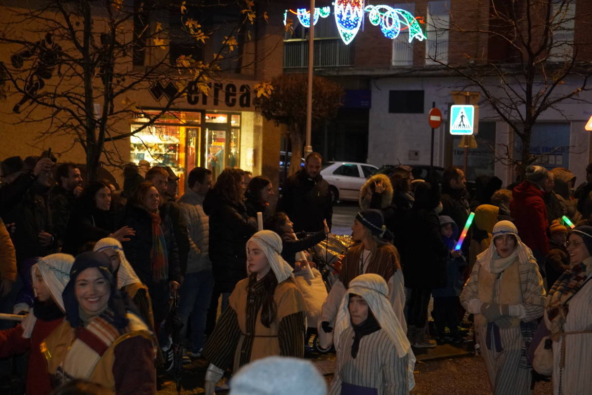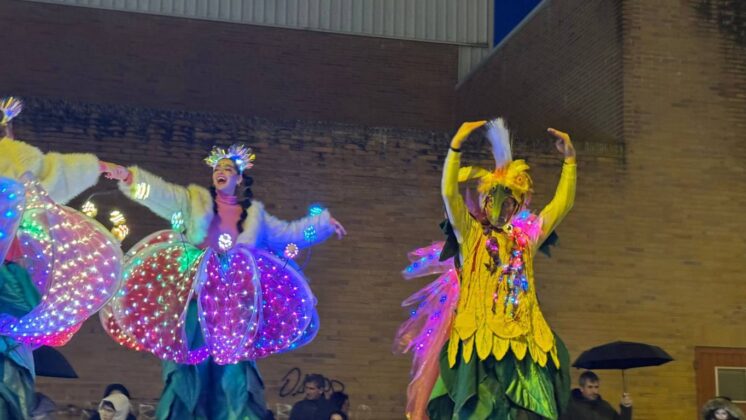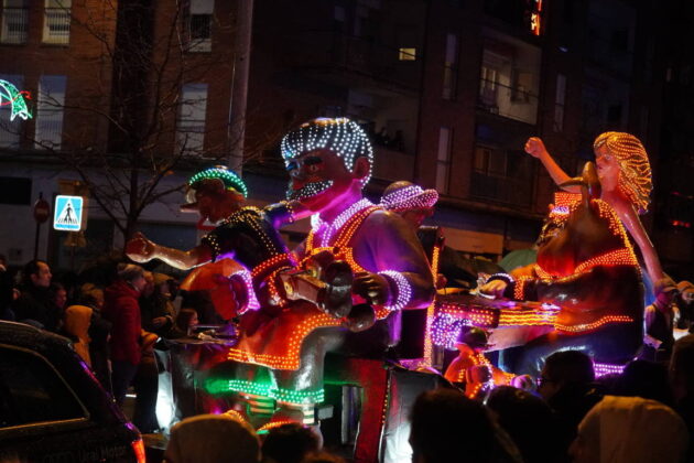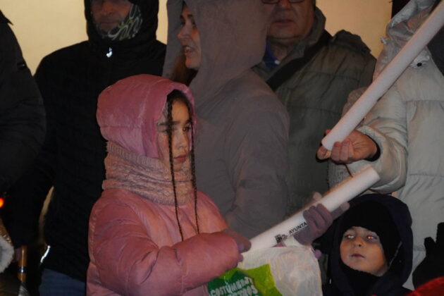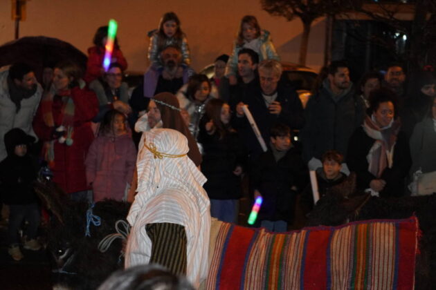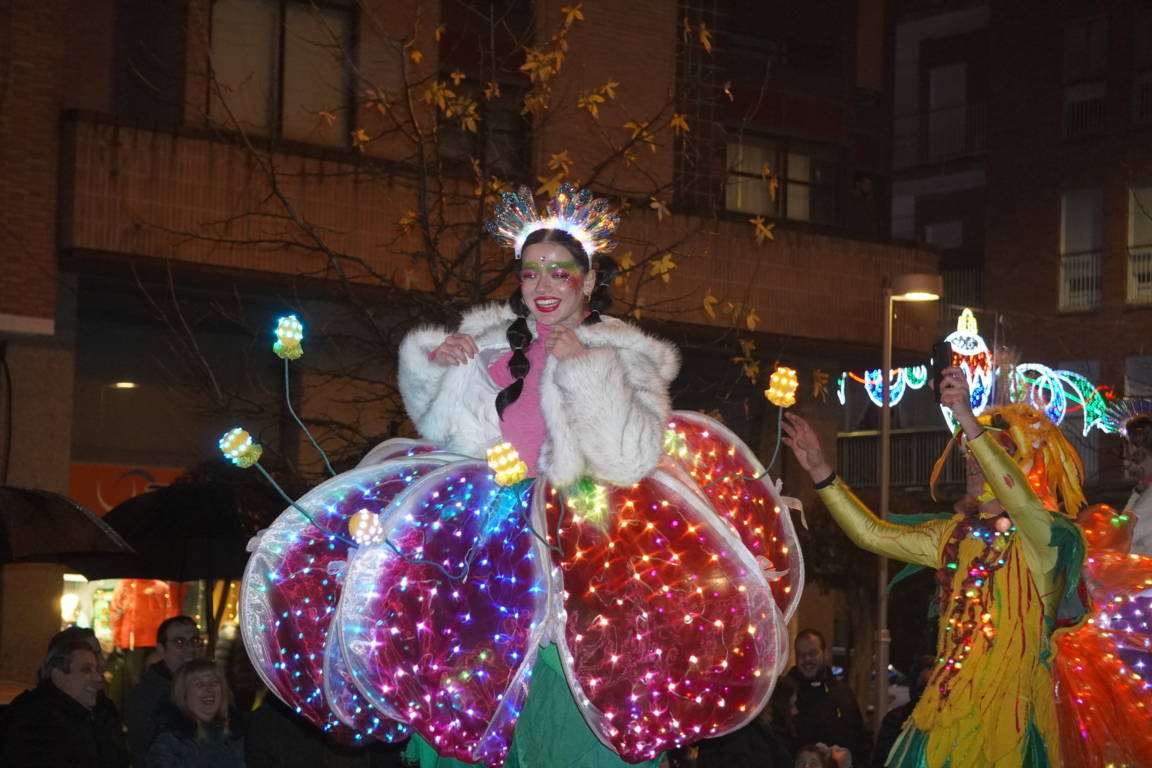Y el tren turístico que durante estos días ha estado recorriendo la ciudad marcó junto a las mariposas luminosas, la segunda parte de la cabalgata que se volvió más tradicional. Con María José y el niño abriendo este acto, seguidos de los pastores y del Grupo de Danzas tradicionales Reino de Castilla.