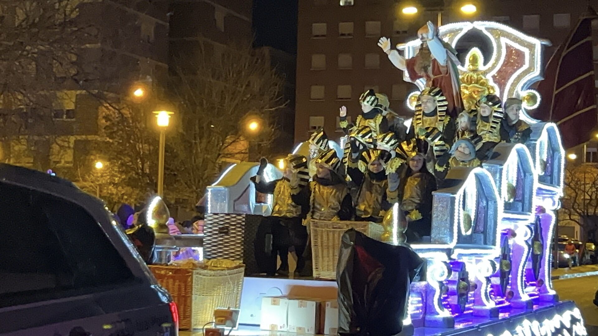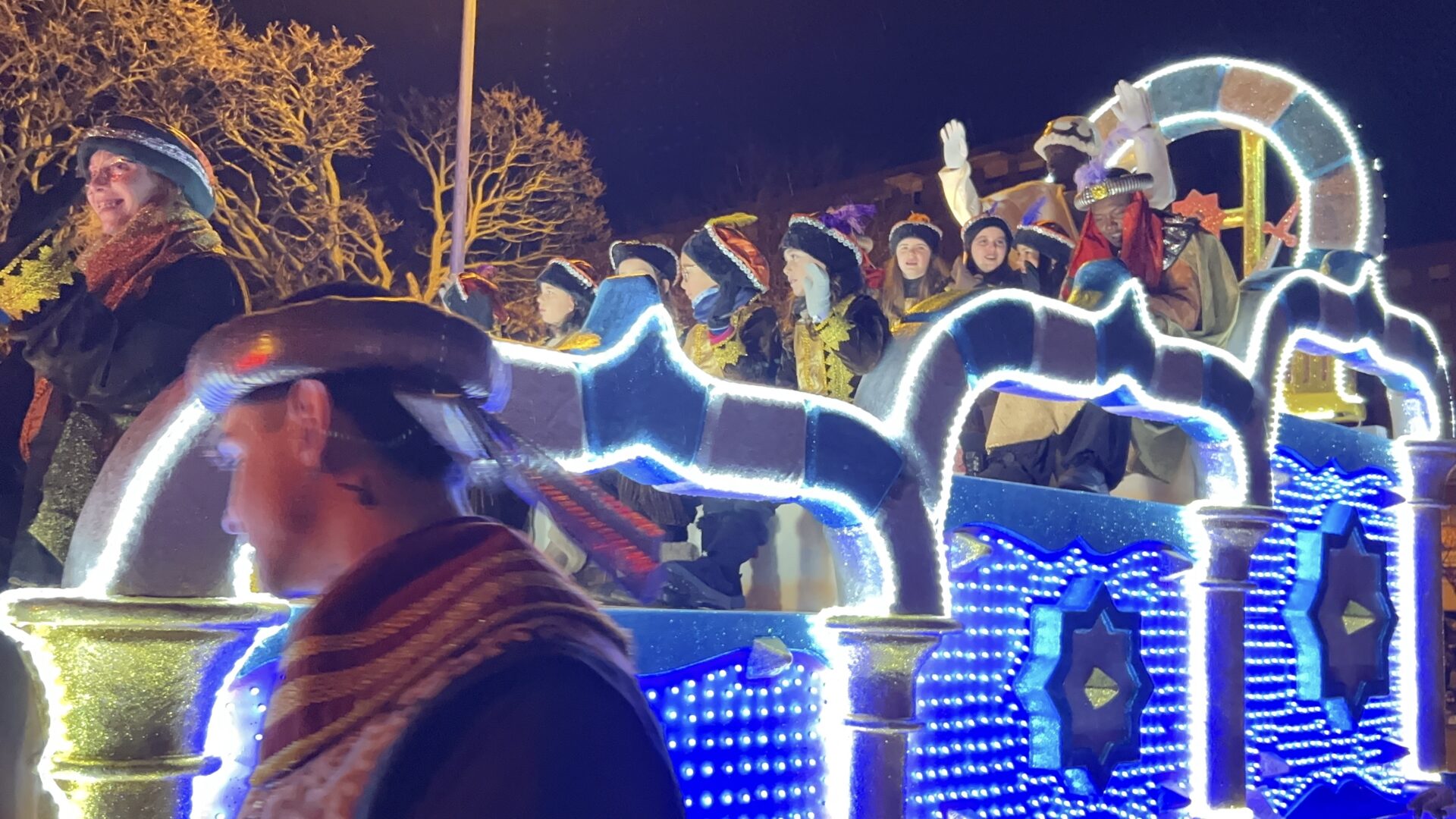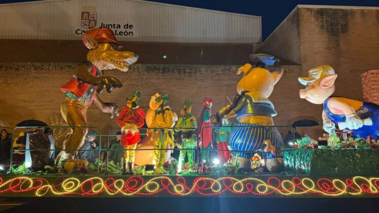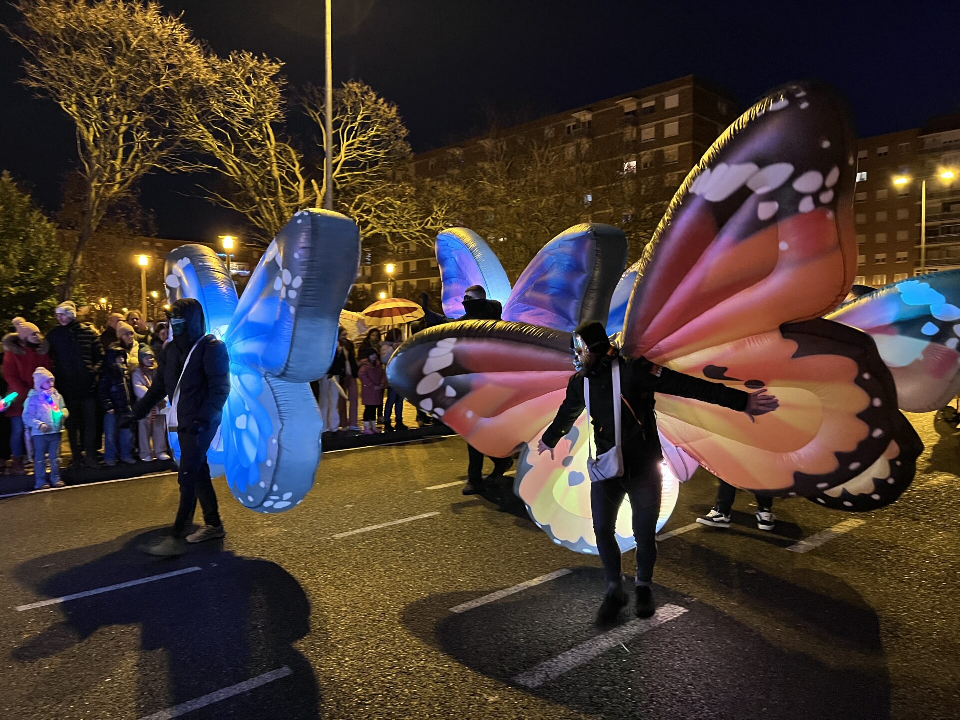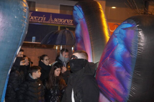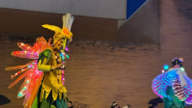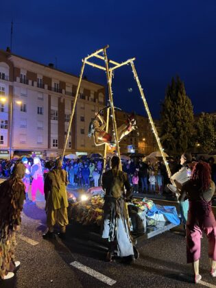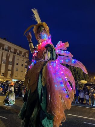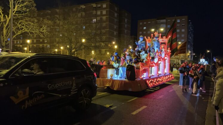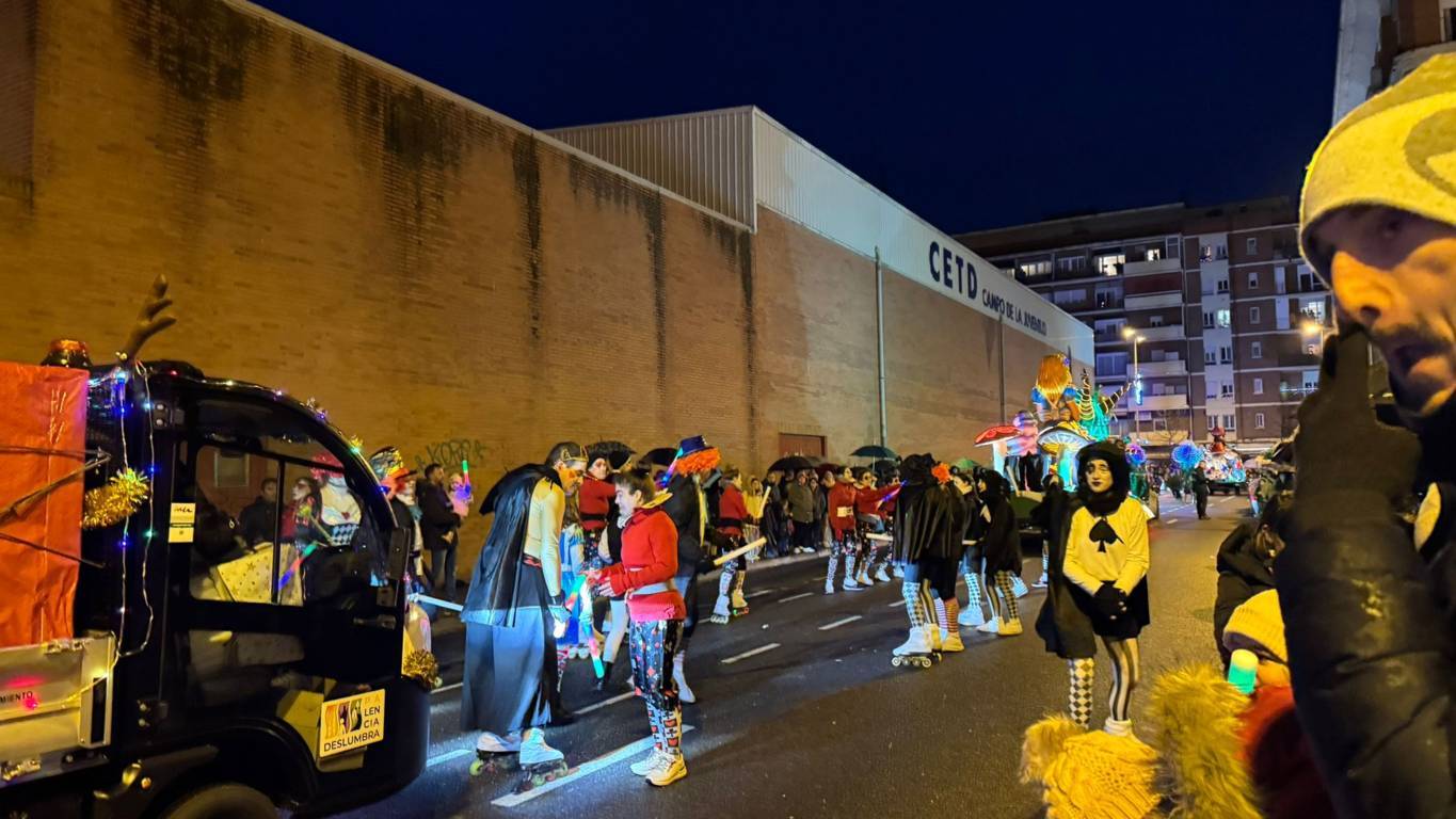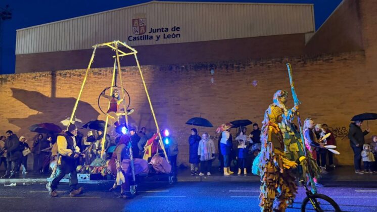 Y el tren turístico que durante estos días ha estado recorriendo la ciudad marcó junto a las mariposas luminosas, la segunda parte de la cabalgata que se volvió más tradicional. Con María José y el niño abriendo este acto, seguidos de los pastores y del Grupo de Danzas tradicionales Reino de Castilla.