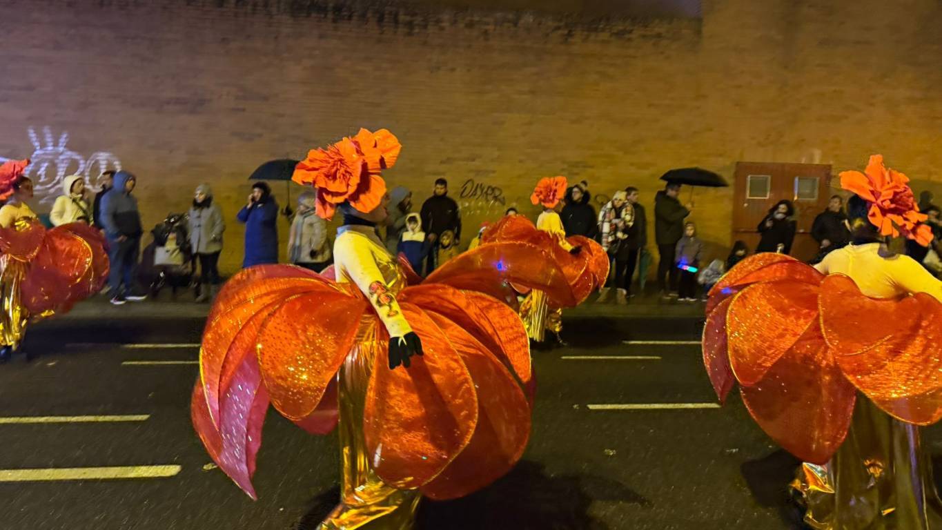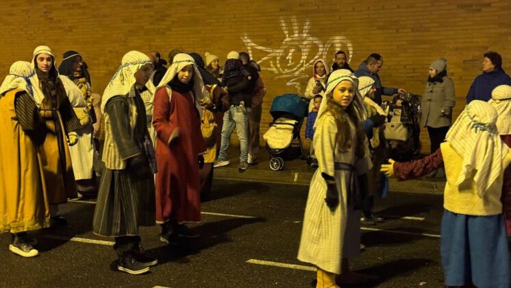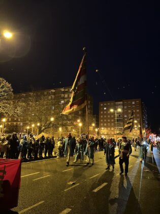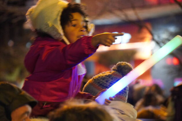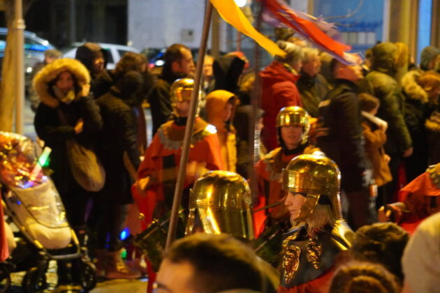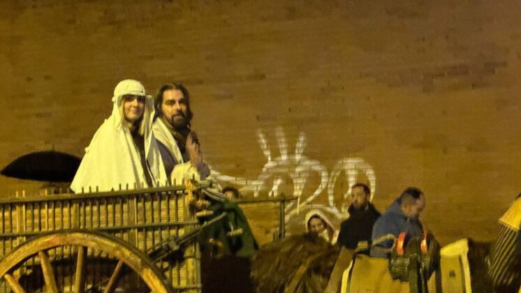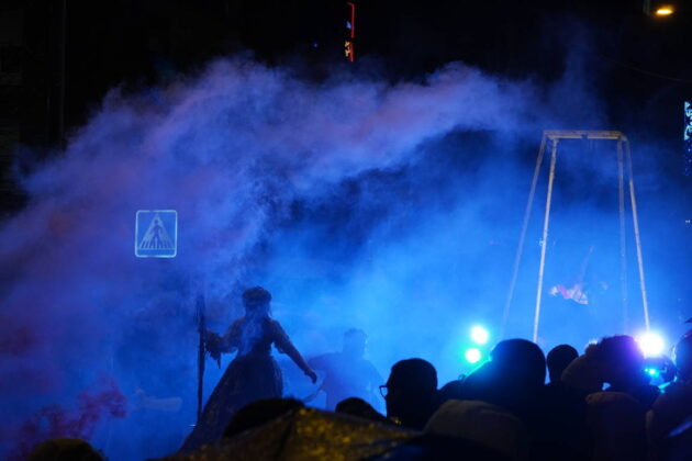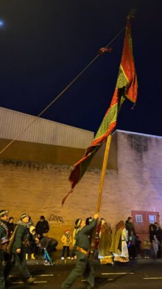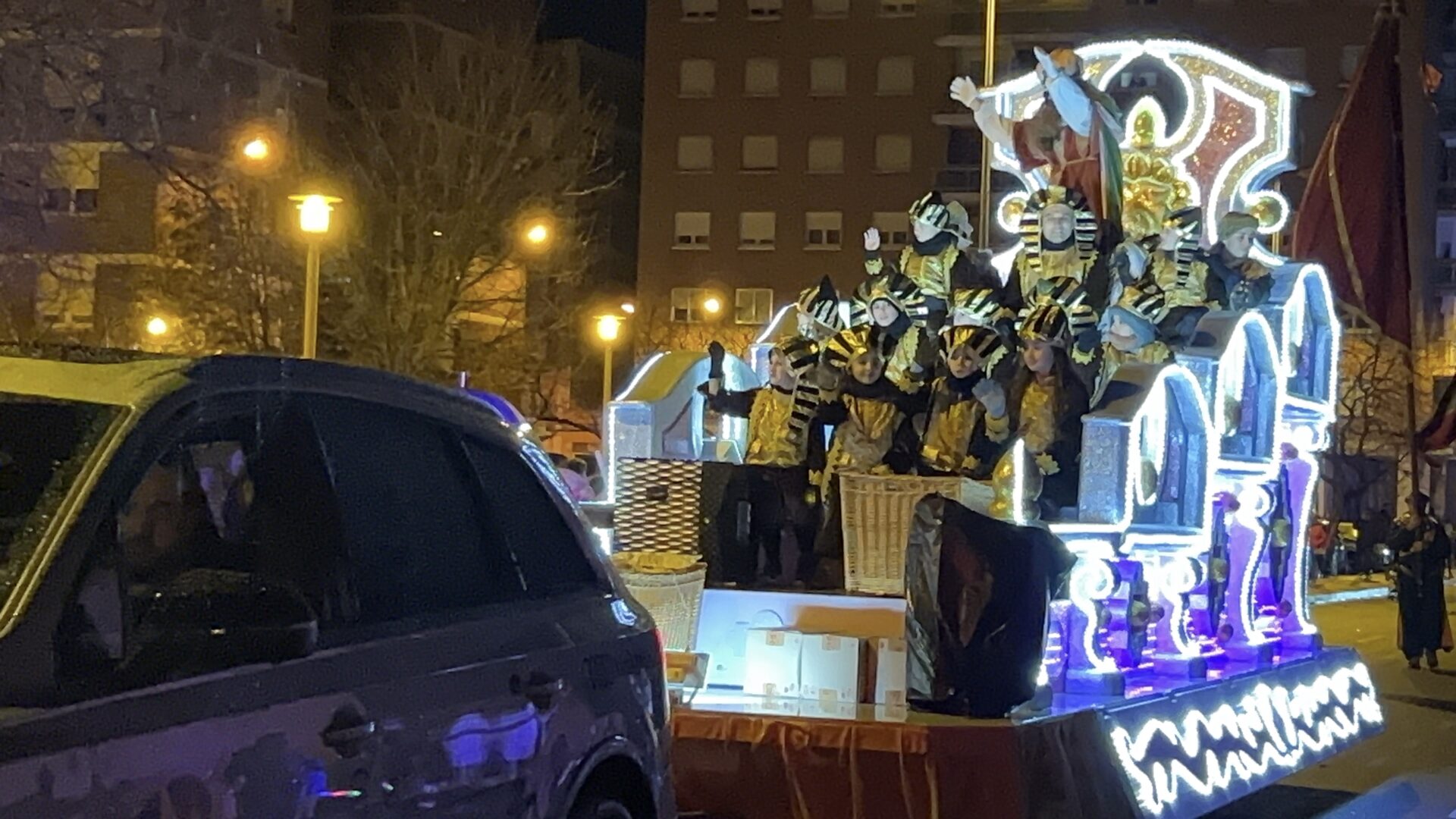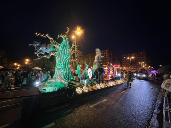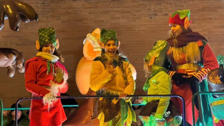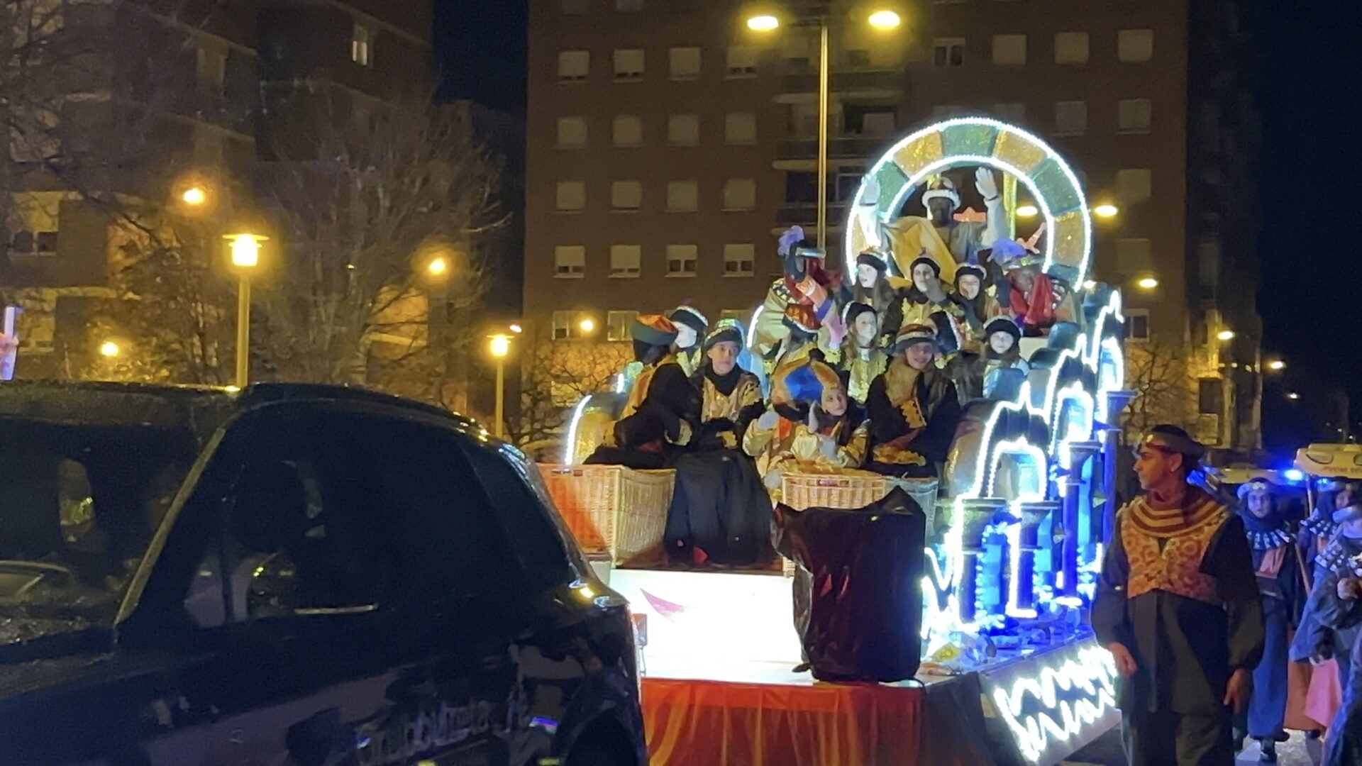 Y el tren turístico que durante estos días ha estado recorriendo la ciudad marcó junto a las mariposas luminosas, la segunda parte de la cabalgata que se volvió más tradicional. Con María José y el niño abriendo este acto, seguidos de los pastores y del Grupo de Danzas tradicionales Reino de Castilla.