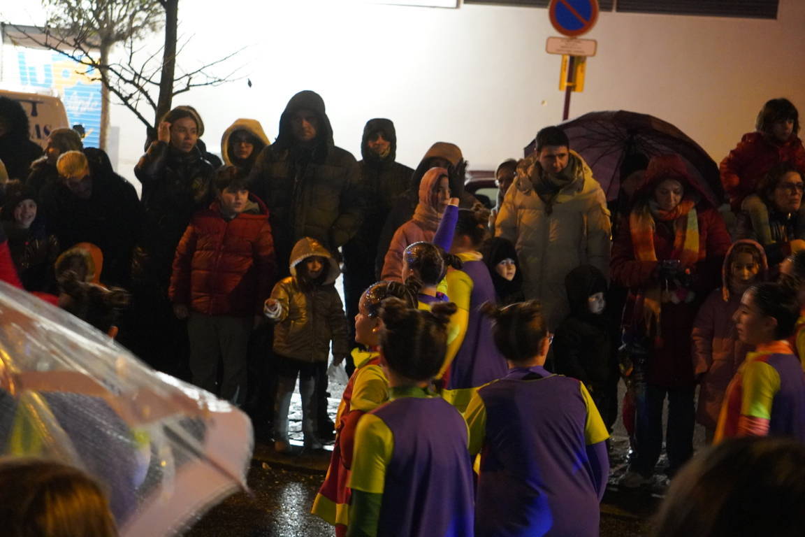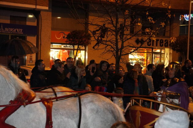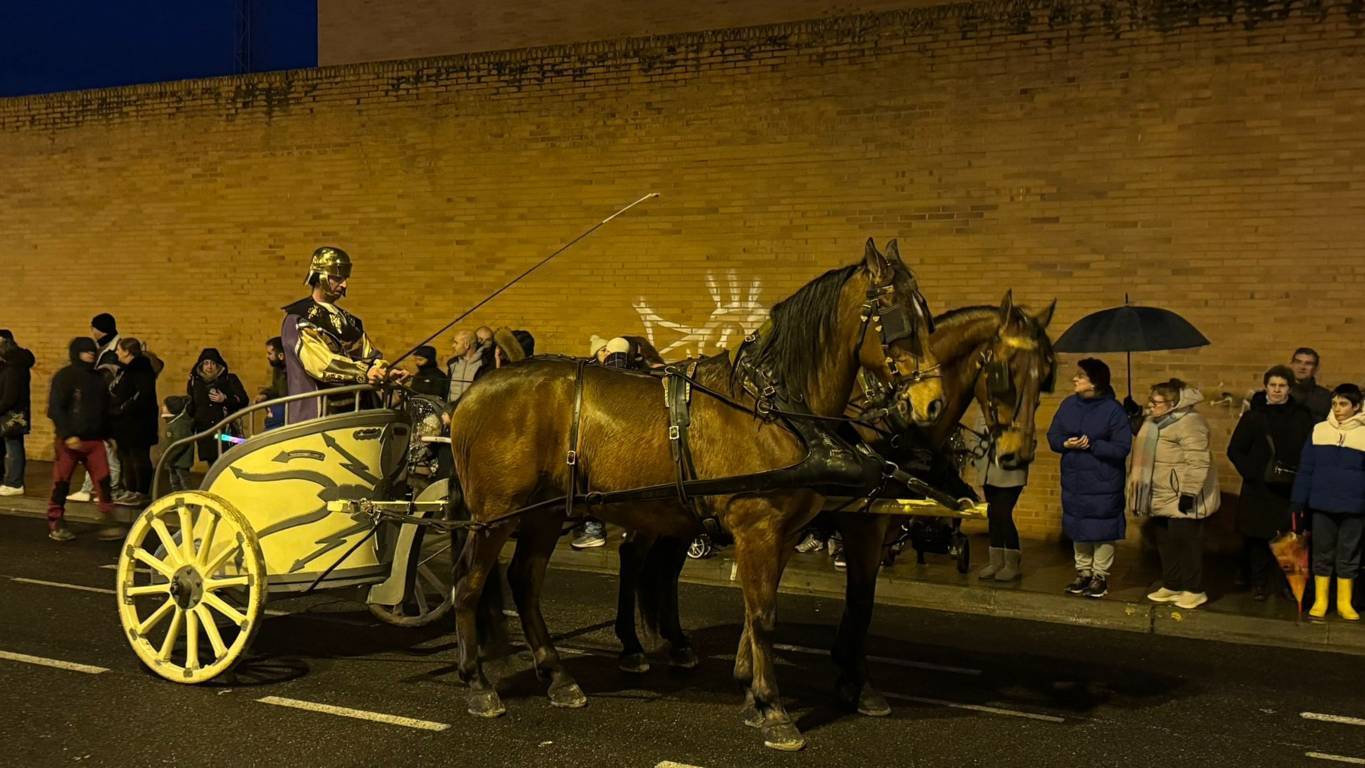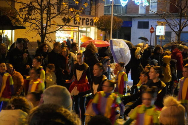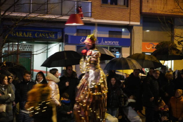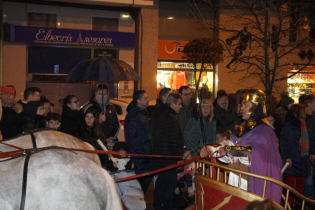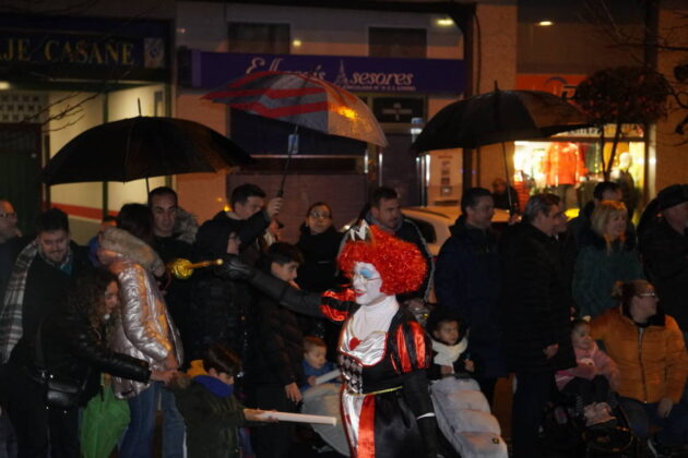 Todo este séquito llegó hasta la Plaza Mayor de la capital, donde la alcaldesa, Miriam Andrés, esperaba a sus majestades para ofrecerles las llaves de la ciudad, aunque el espectáculo musical se vio afectado debido a la lluvia que si había respetado buena parte de la cabalgata, ahí se mostró inclemente.