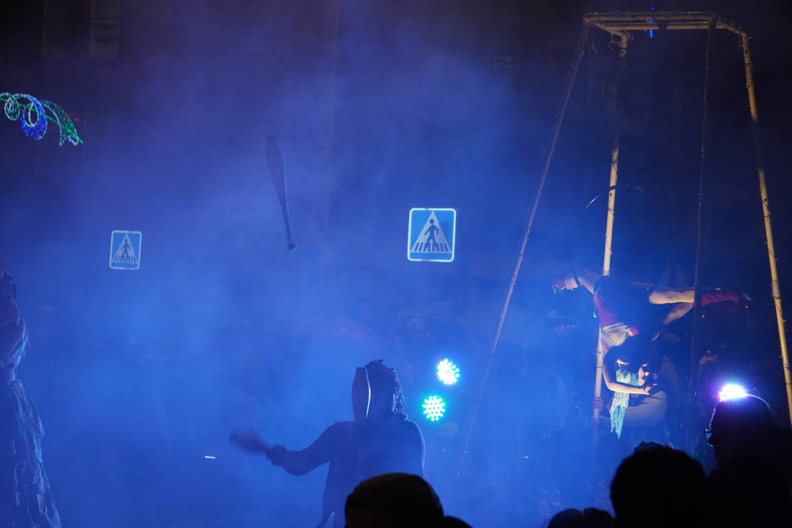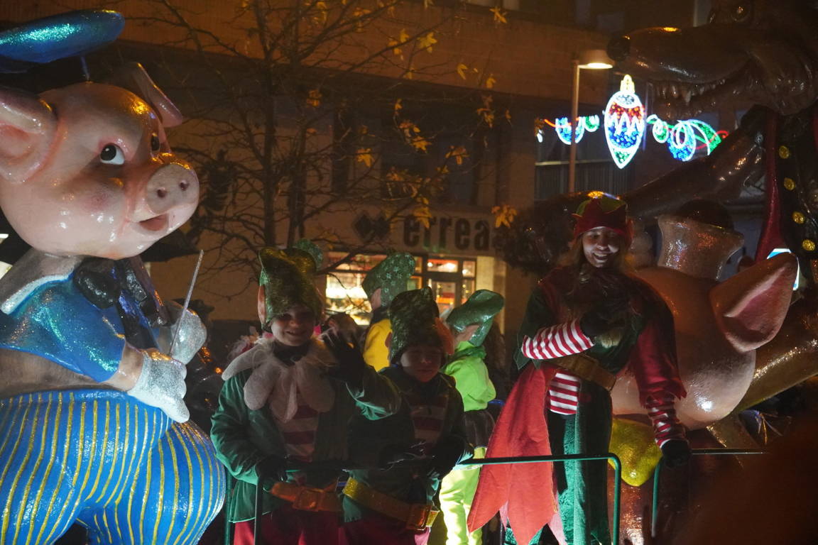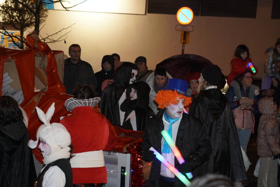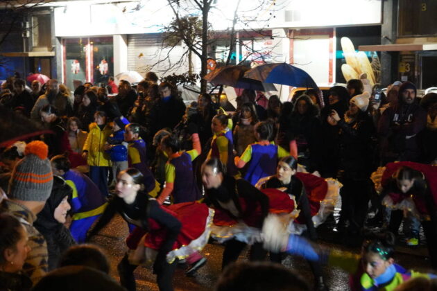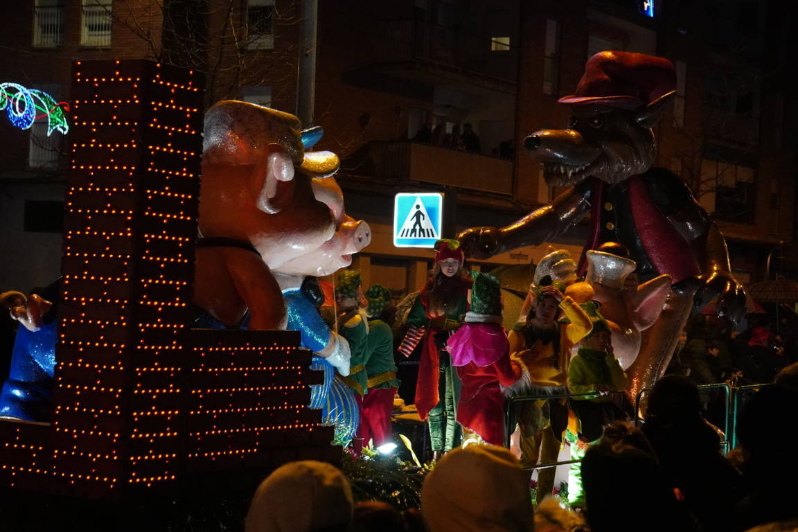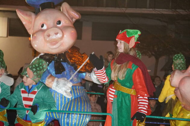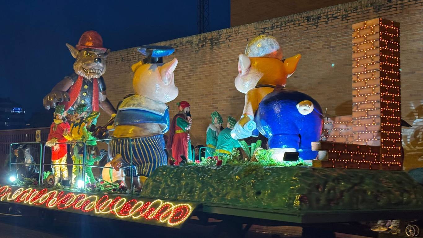 La danza llegó de la mano de los pinochos de la escuela de danza Smile, acompañando al propio pinocho antes de la primera carroza de la noche: la de Los Tres Cerditos.