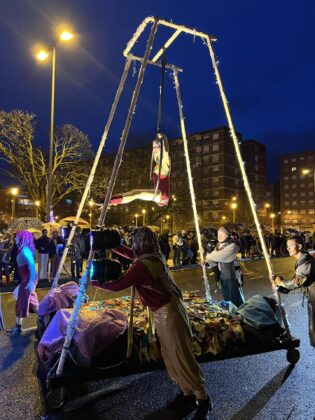La parte más visual llegó de las actuaciones de Conte de L’Herison y de las cometas del Jardín de los Vientos, haciendo volar la imaginación hacia el cielo amenazador de lluvia.