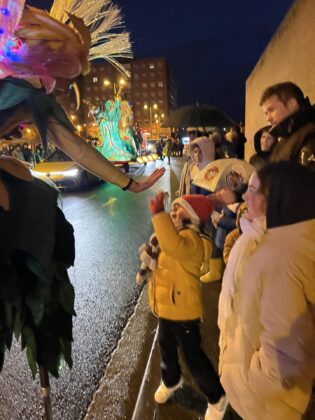 Fue Baltasar quien cerró el paso público de los Reyes Magos por la capital palentina. Llamándoles por lo que son, chiguitos y chiguitas, les aconsejó que “no hace falta ser mayor o tener muchas cosas para ayudar, a veces un gesto amable, una sonrisa, un dibujo, algo hecho con vuestras manos o ayudar en casa puede alegrar el corazón de quienes viven con vosotros. La generosidad os hace sentir bien por dentro y ayuda a hacer del mundo un lugar mejor”.