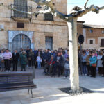 La localidad palentina de Astudillo despide a la mujer y sus dos hijos fallecidos en un accidente de tráfico con un minuto de silencio en la plaza de España y una misa funeral en la iglesia de San Pedro de la localidad. / Brágimo (ICAL)
