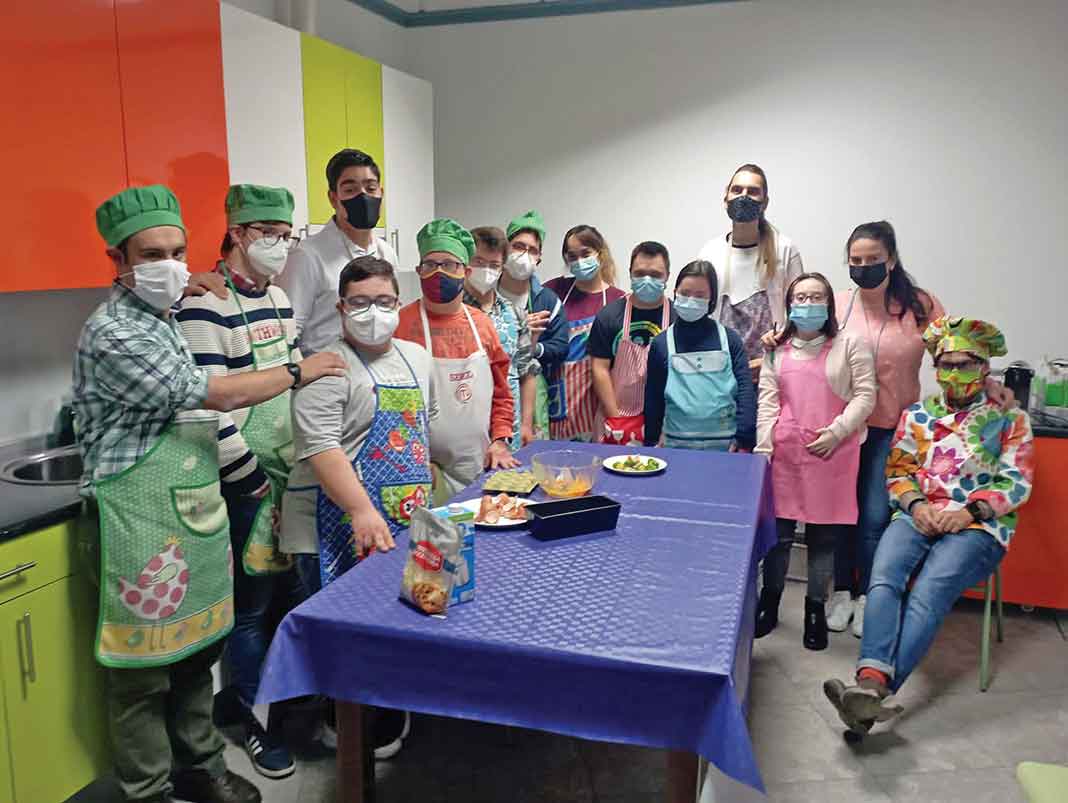 A día de hoy contamos con 4 taller de cocina: el taller de cocina de las mañanas que se imparte los miércoles y acuden 2 usuarios; el de “MASTER CHEF DOWN” que se imparte los jueves y al que acuden 6 usuarios, el “TOP CHEF DOWN” que se imparte los viernes y acuden 6 usuarios y el taller “COCINA PRÁCTICA Y SIN GLUTEN” que se imparte los viernes y al que acuden también 6 usuarios.