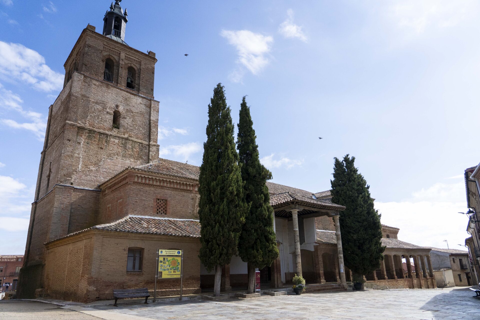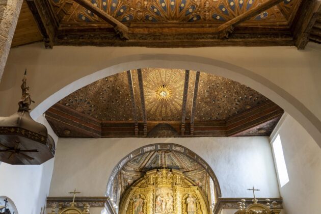 En Fuentes de Nava antes había cinco iglesias y ahora hay tres. Algunas de ellas esconden secretos, pues durante la peste “se dieron de yeso y cal las paredes” por la acumulación de gente, con el fin de reducir los contagios. Así, en la iglesia de San Pedro de Fuentes de Nava existe un artesonado mudéjar del siglo XVI, “pero está tapado”. “Si en un pueblo como este tienes tres artesonados mudéjares es porque supuestamente aquí tenían el talle, aunque a partir de ahí hacían trabajos en otros sitios cercanos”, apunta sobre la autoría del Maestro de Fuentes de Nava. “En estas obras reconocemos su manera de trabajar, porque cada maestro tenía su forma de crear. En este caso es un cielo plagado de estrellas, con policromía y utilizando pino autóctono”.