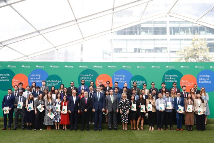 El rey, Felipe VI, acompañado del presidente de Iberdrola, Ignacio Galán, presidió hoy en la sede central de la compañía en Madrid la entrega de las becas correspondientes a distintos programas formativos impulsados por Iberdrola y su Fundación para 2022-2023. Entre los beneficiarios, la palentina Eva González recibió la Beca Iberdrola Restauración Museo Bellas Artes de Bilbao, de un año de duración, prorrogable a otro, que persigue finalizar la formación de alto nivel de futuros especialistas en conservación y restauración.