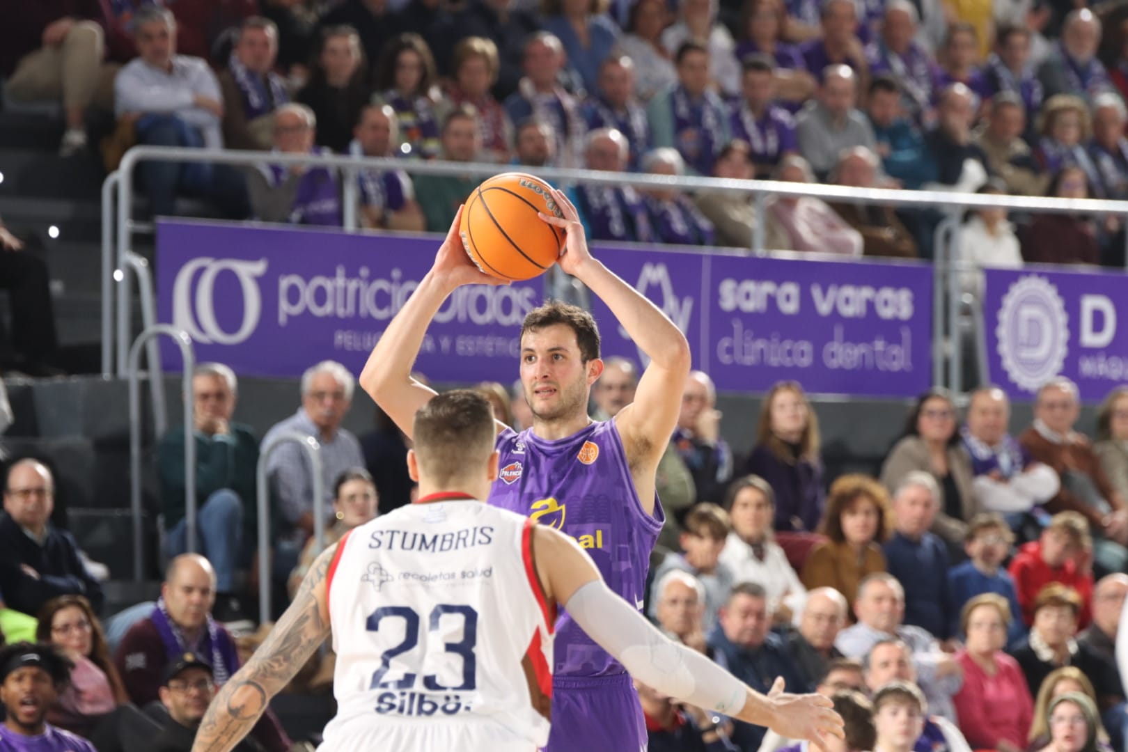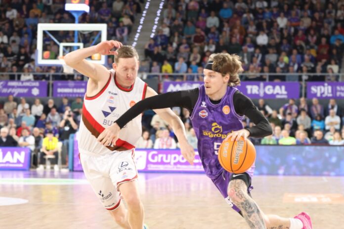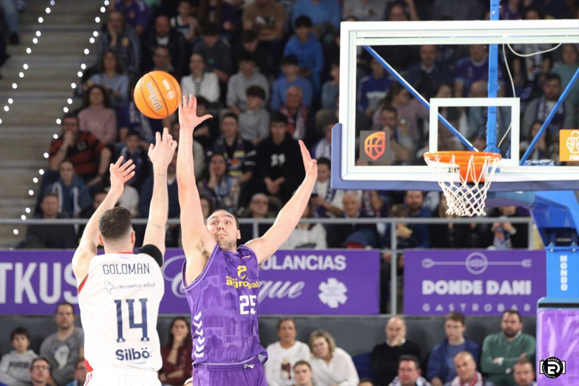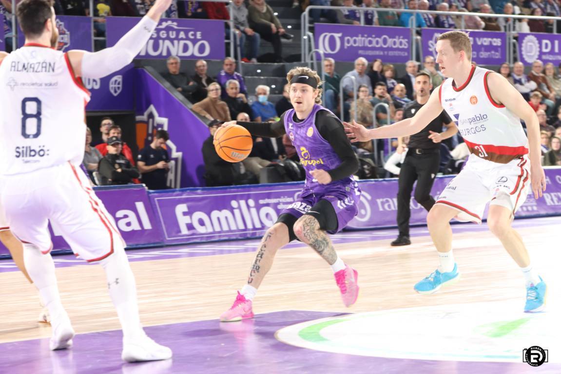 En un ajustado duelo y final del encuentro, los morados tuvieron la canasta para llevarse la victoria ante los líderes de la competición, el San Pablo Burgos (85-87)