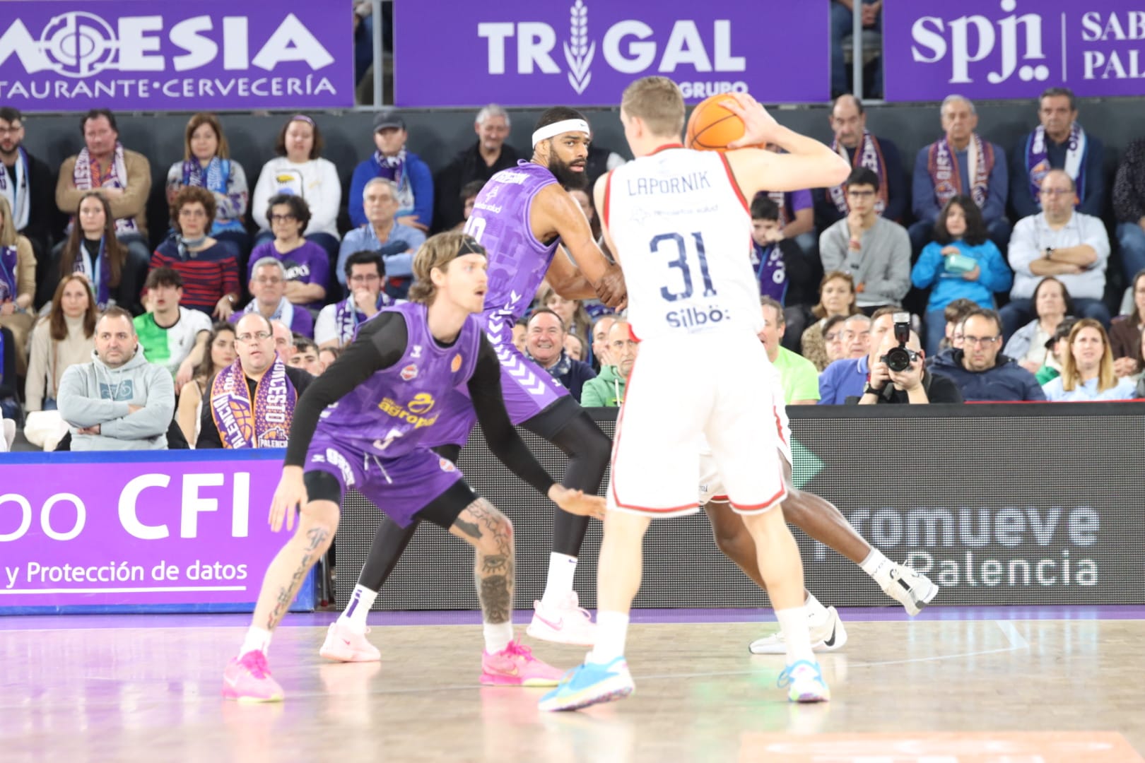 Pero en un abrir y cerrar de ojos, Palencia desperdició su ventaja. Tiro de tres de Goloman que entra y Krutwig, poco acostumbrado a defender tan lejos, comete falta. El húngaro falló el adicional: 39-38 a falta de menos de dos minutos.