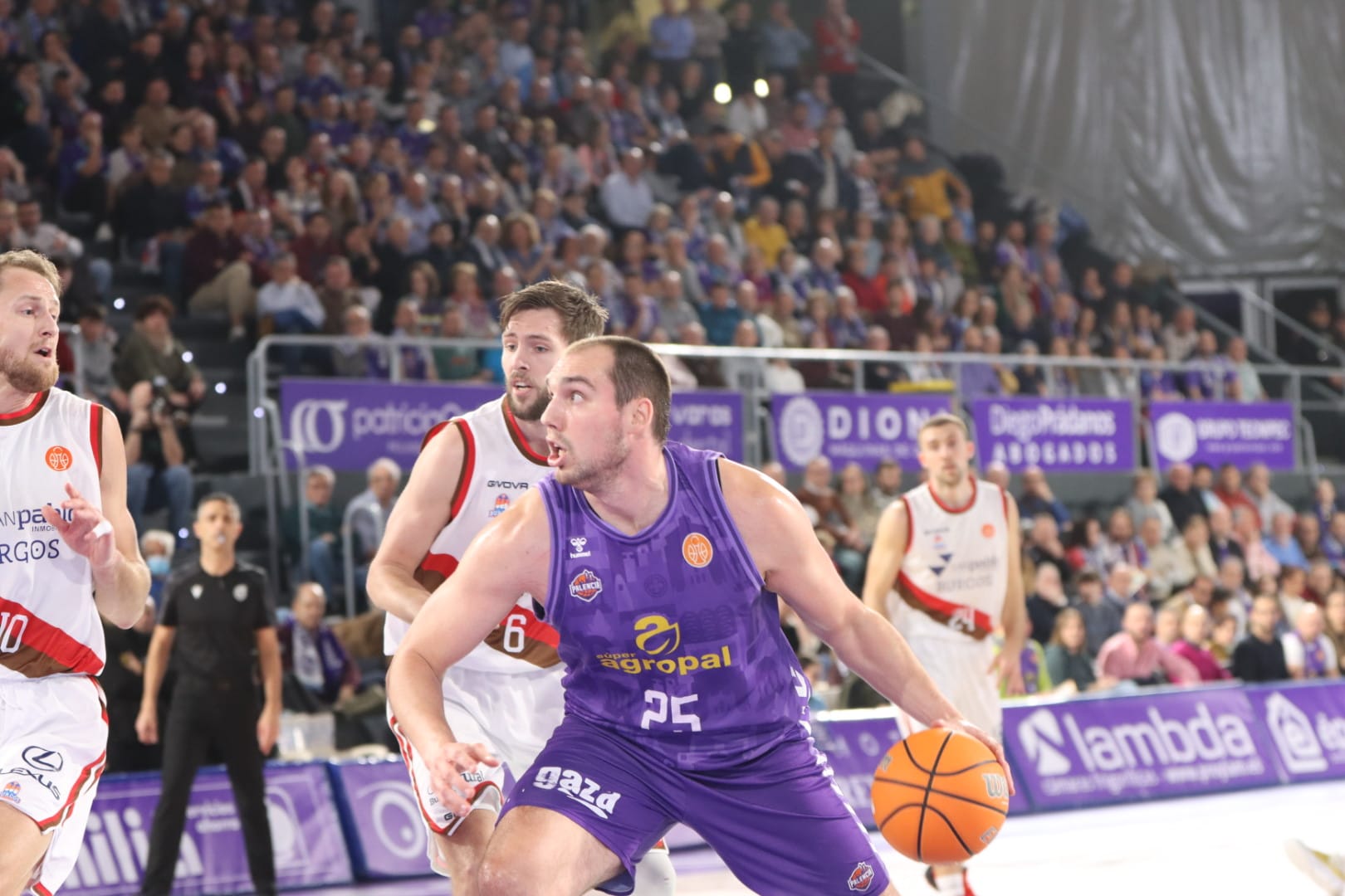 De poco sirvió el tiempo. Burgos volvió a enchufar de tres, con Corbalán ahora ya como máximo anotador (18) y logró cuatro de ventaja. El pabellón no estaba conforme con las decisiones arbitrales, que castigaban los ataques palentinos. Nuevo tiempo muerto de Guil.