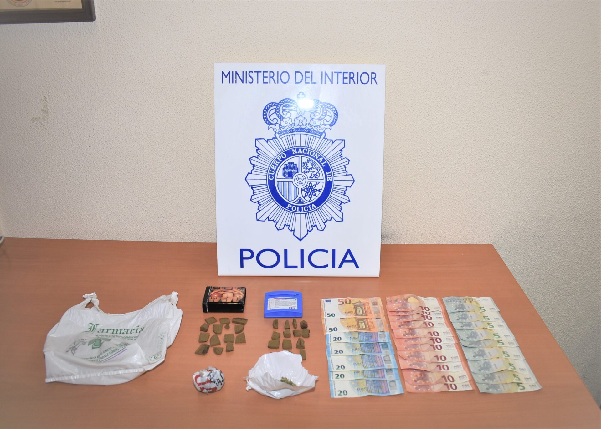 Al detenido, le constan antecedentes por diferentes delitos tanto en la Policía Nacional como en la Guardia Civil, se le ocuparon dos envoltorios y dos cajitas pequeñas conteniendo distintas cantidades de “hachís” (45 gramos.) y “Marihuana” (6,7 gramos.), cuyo valor en el mercado superaría los 340 Euros. El dinero intervenido asciende a 355 Euros.