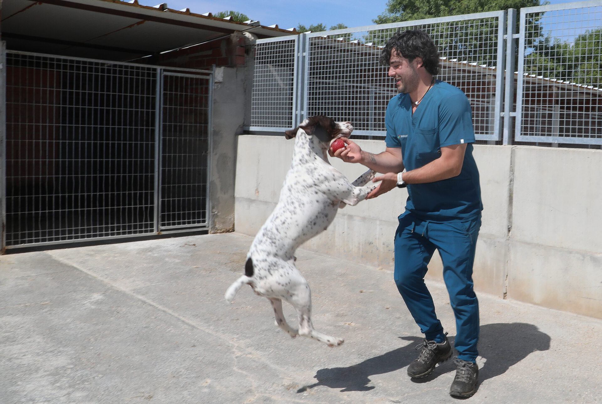 Protectora de animales de Palencia, en la imagen Adrián Bermejo, uno de los responsables de la empresa Ruralvet que lo gestiona de forma temporal. / Brágimo (ICAL)