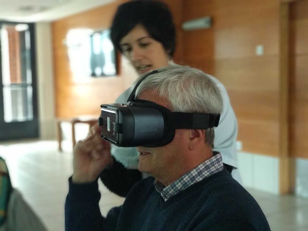 A través de las gafas de realidad virtual inmersiva, los residentes en Puente de Hierro pueden viajar, por ejemplo a la Barcelona de Gaudí, a Lisboa, a paisajes a los que de otra forma sería casi imposible llevarles.