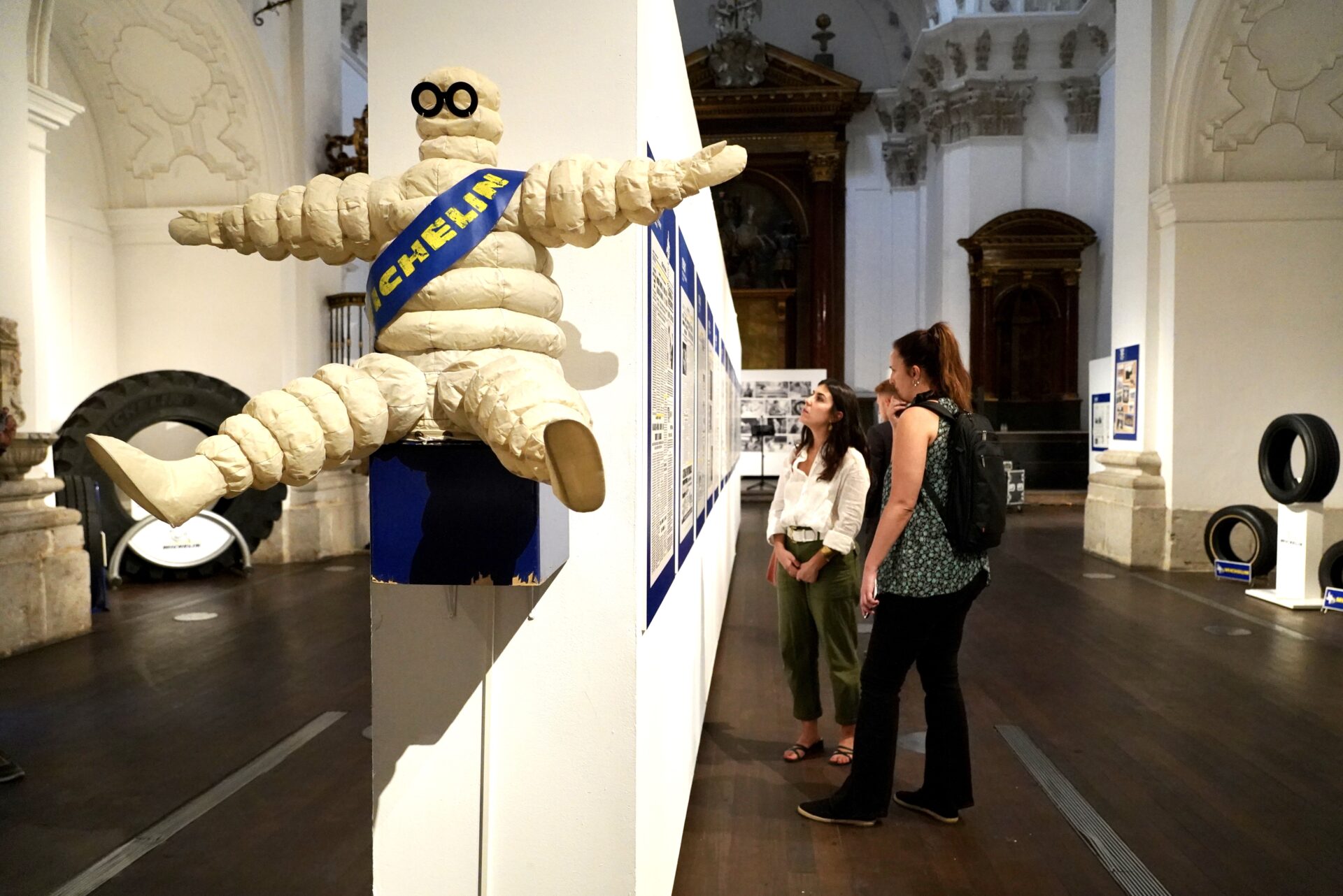 Las imágenes están acompañadas por objetos antiguos ligados a la historia de Michelin y reconocibles por los visitantes, como neumáticos, fotografías antiguas de trabajadores, cartelería, rótulos, herramientas y objetos que muestran la evolución de Bibendum, el entrañable icono de la marca, en estas cinco décadas.