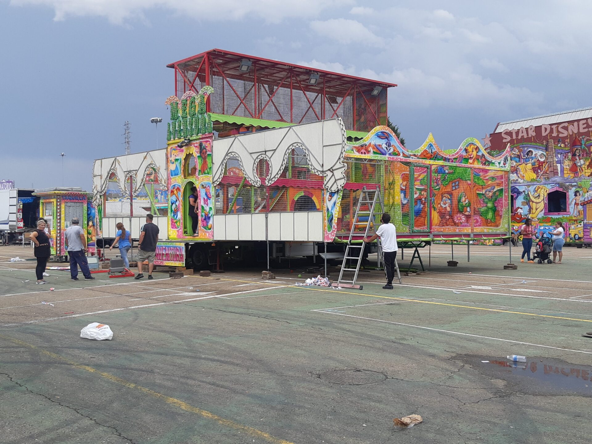 Y así ha sido. En plena tarde del Día del Niño en el recinto ferial de Palencia tiene un agujero en su centro, en la tercera y cuarta línea de atracciones. Son varias las atracciones que ya esta tarde, han aparecido a medio desmontar o se estaban llevando a cabo las labores de levantamiento de las mismas, presumiblemente relacionadas con el incidente.