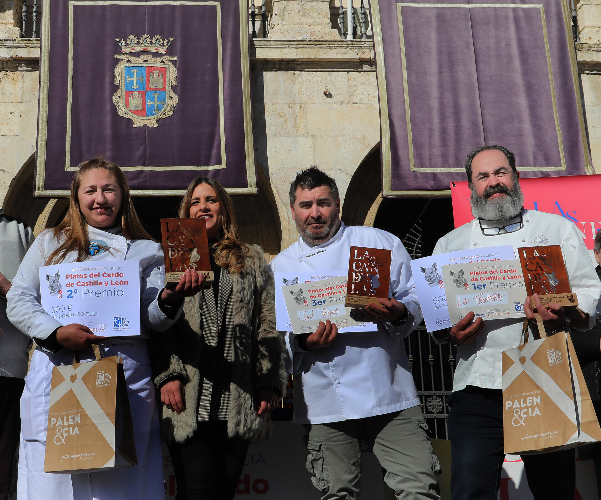 Completando el podium de honor, el representante palentino. Alberto Villegas, del Restaurante San Remo de Palencia, para quien fue el premio de 150 euros además del trofeo conmemorativo. Lo logró con “guiso de oreja de cerdo con pimientos de Torquemada y cebollas de Palenzuela”.