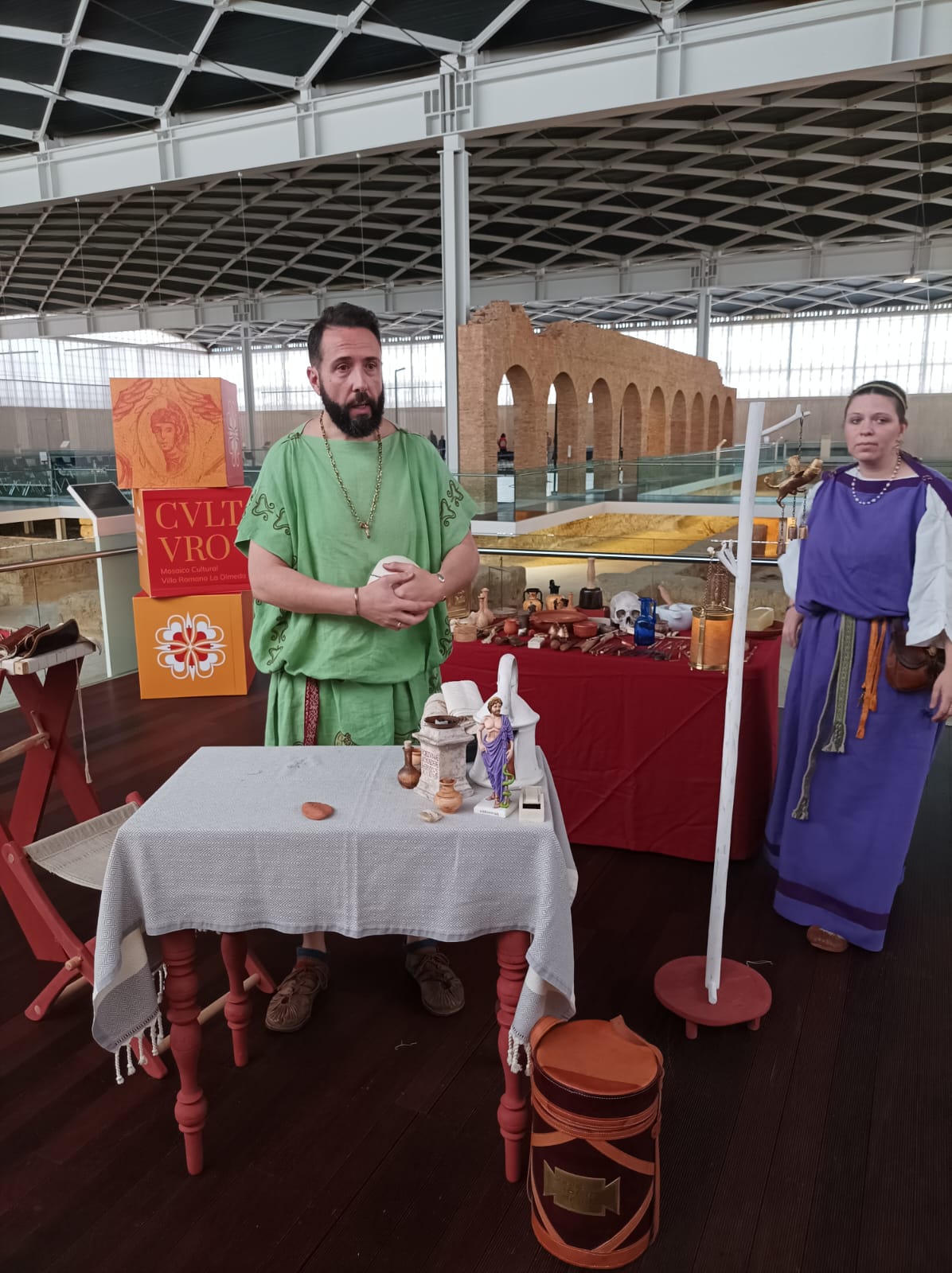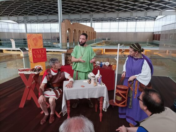 Tras la visita, se degustarán una muestra de tapas romanas, se brindará por la diosa Fortuna y se explicará, con la ayuda de la música y la danza, cómo se desarrollaba la fiesta, terminando el acto en torno a la medianoche. Los asistentes serán espectadores de una teatralización en formato de comedia flíaca, utilizando humor y sátira se presenta un pasaje que tiene que ver con la mitología romana.