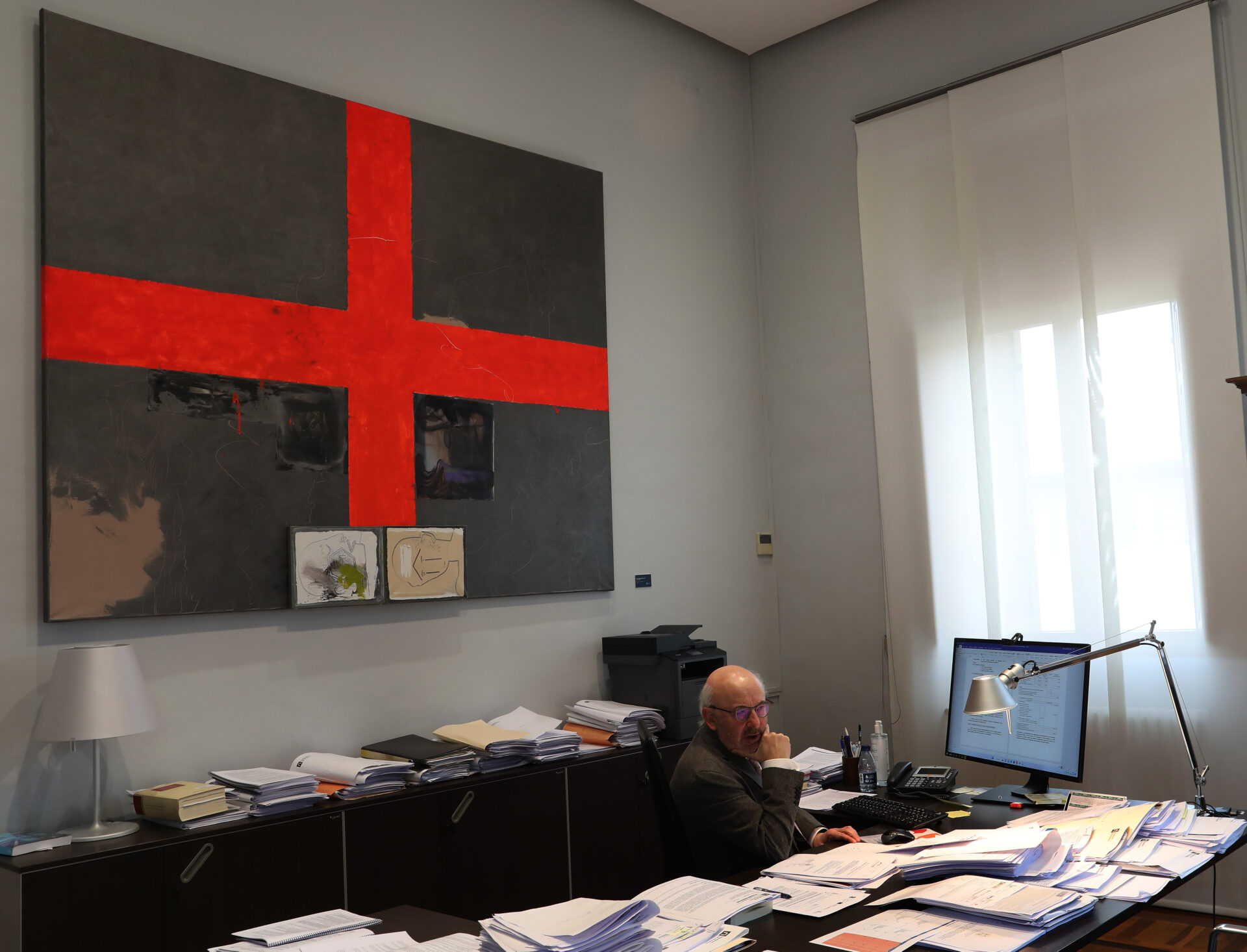 Se intenta que en los despachos y zonas más representativas haya los mejores cuadros, como ocurre con otro cuadro de Gastón Orellana, con la ‘Cruz fosforescente’, un pintor de tipología también abstracta.