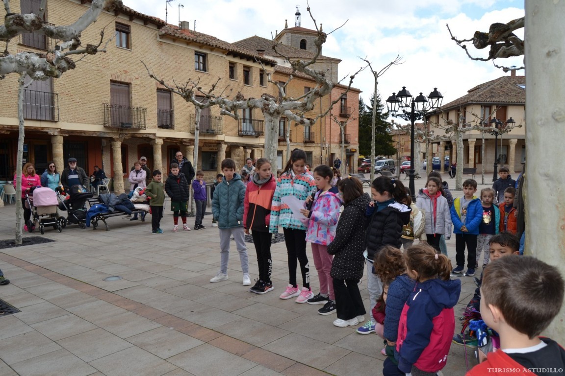 Niños y niñas del CEIP Anacleto Orejón participaron en la lectura del manifiesto en la plaza. Posteriormente, se colgaron delantales en la balconada del Ayuntamiento como gesto simbólico. La jornada continúa con la proyección del documental “Mujeres Silenciosas” y una chocolatada con juegos populares.