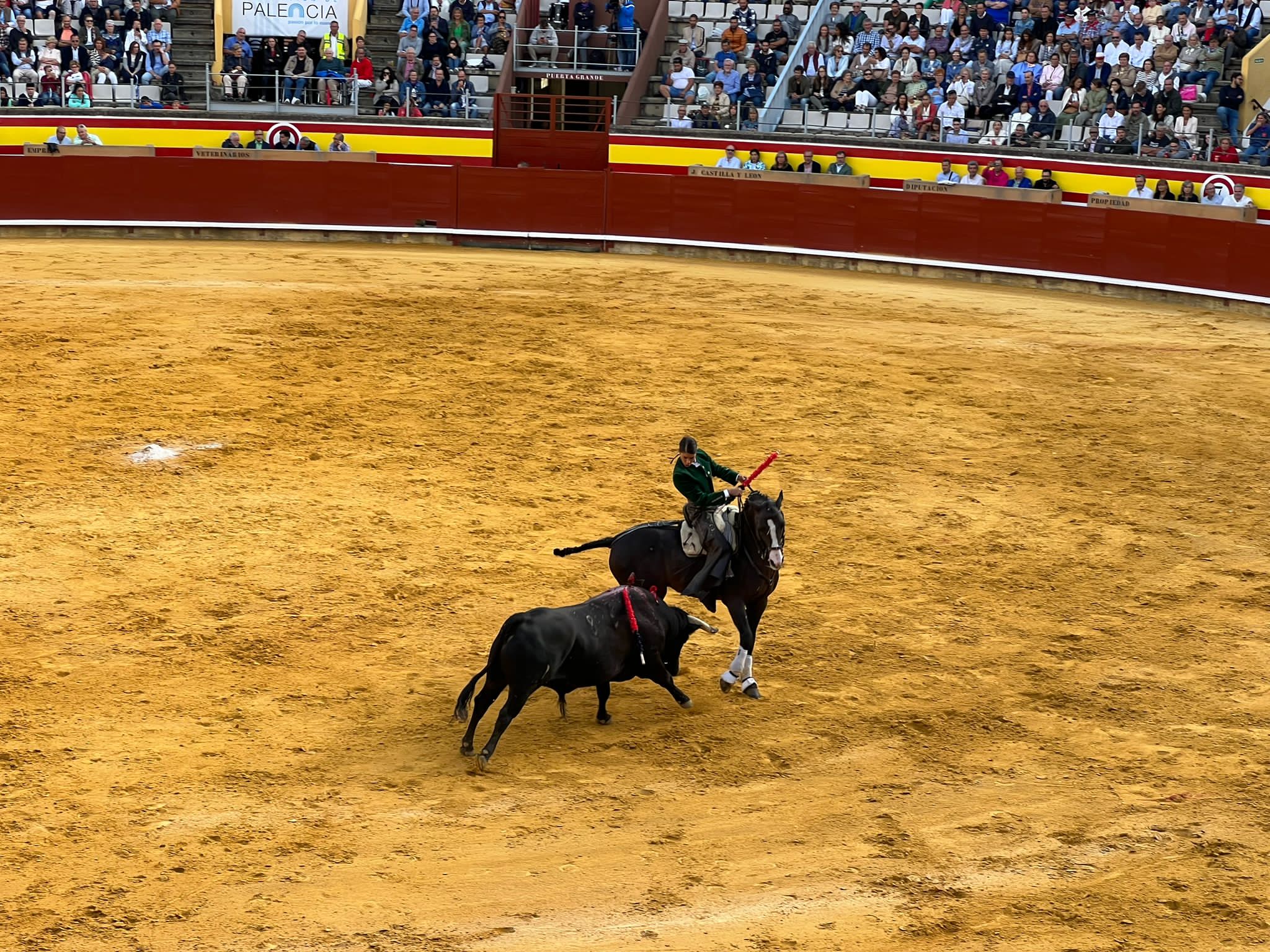 Salió muy despistado el quinto de la tarde hasta que despertó con el rejón de castigo. De la mano de ‘Bético’, Lea Vicens cuajó una faena cargada de verdad y sentimiento, colocando hasta cinco banderillas. Una entrega absoluta que se consumó con un certero rejonazo, que acabó por crear una comunión con el respetable. Puerta grande para una rejoneadora que ya es fija en el cartel de San Antolín y en el corazón de los palentinos.