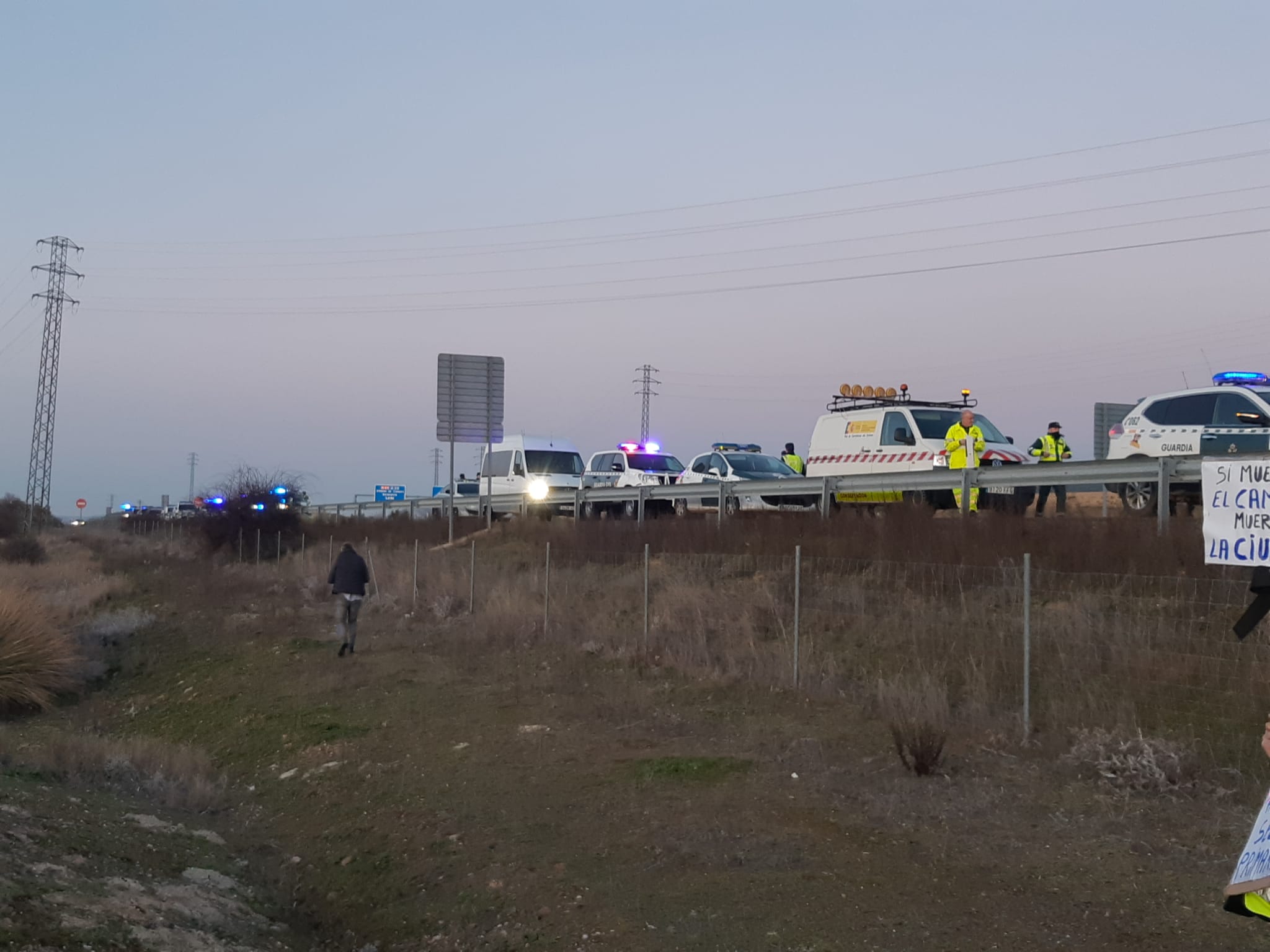 Allí les esperaba ya un retén de la Guardia Civil apostado para defender la vía de comunicación. Sin embargo, los centenares de agricultores y ganaderos tumbaron la valla, y accedieron a la autovía en torno a las 18 horas, logrando cortar el tráfico.