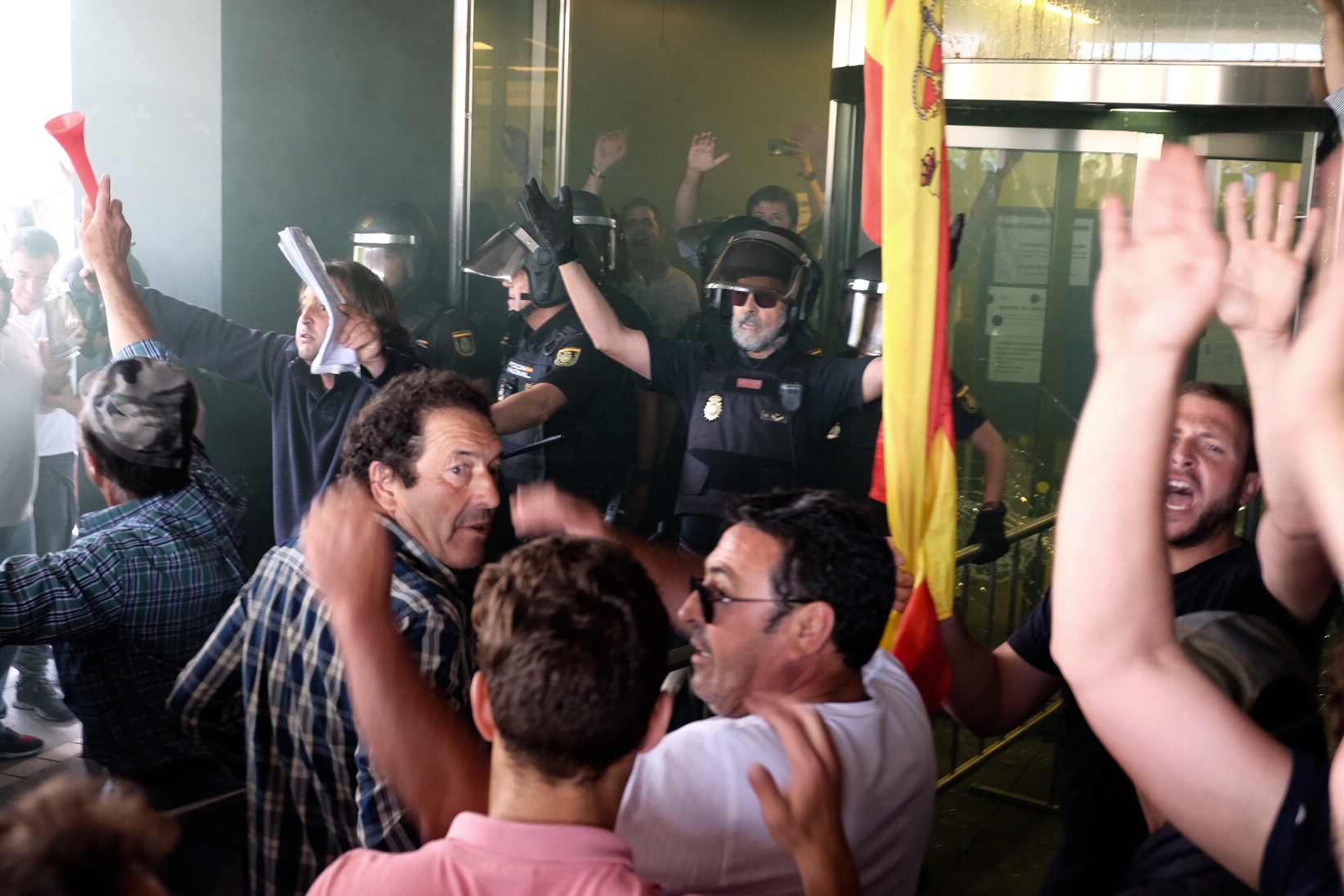 El momento de máxima tensión, por el momento, se vivió cuando la Policía Nacional permitió entrar a los representantes de las opas, seguidos de una avalancha de manifestantes que intentó acceder al interior de la Delegación sin éxito. Aún así, la marea dejó varios cristales rotos y un herido por una brecha en la cabeza.