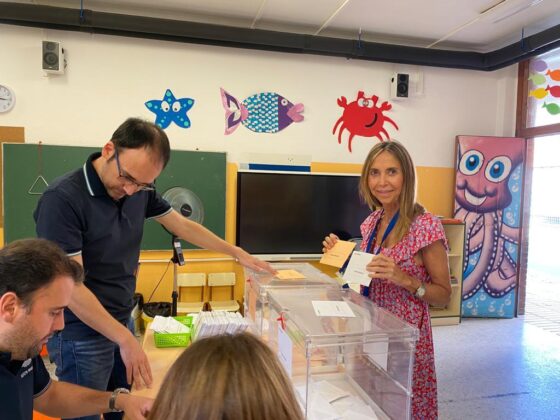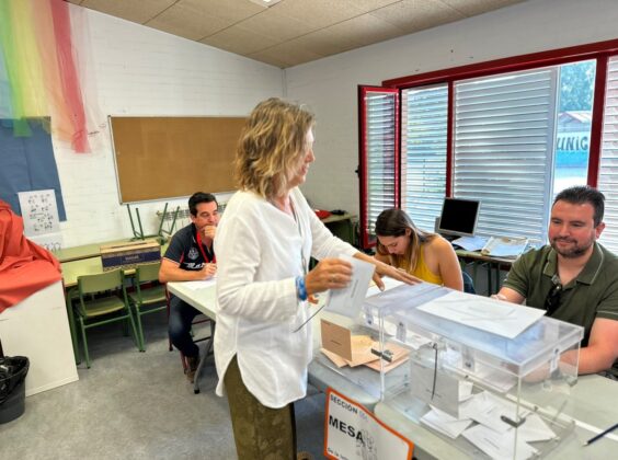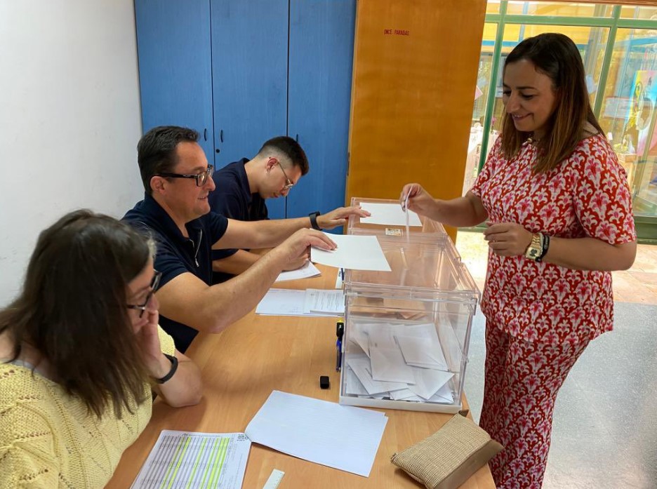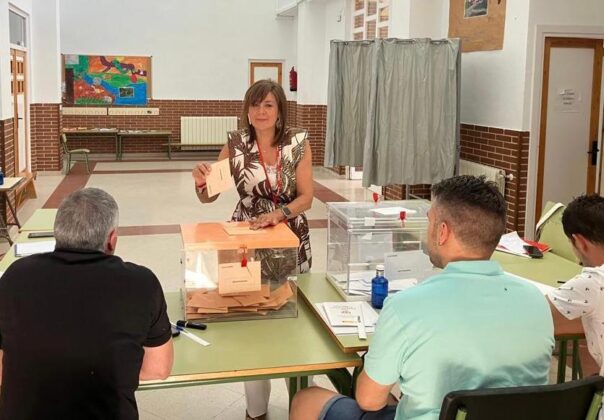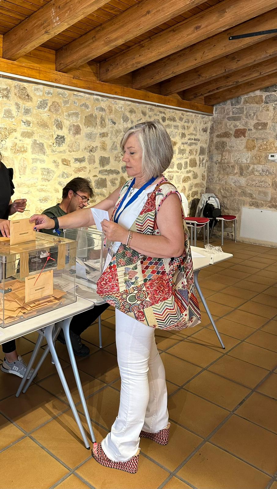 Rosa Aldea, candidata y cabeza de lista al Senado por el PSOE de Palencia, ejerciendo su derecho a voto.